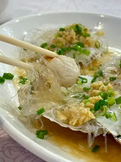 星斑孖寶 $468游水星斑仔 星斑仔魚身夠厚實,肉質細緻有彈性,咬落滑溜不鬆散,醬油同蔥絲輕輕提鮮,魚腩位多汁不油膩,骨位附近更鮮香,整體鮮味十足蒜茸粉絲蒸元貝 粉絲吸滿元貝汁同蒜茸蒸出嚟嘅鮮味,入口滑溜爽口,元貝本身厚身爽甜,啖啖肉,非常新鮮魚湯海味雜菜煲 $108 魚湯呈乳白色,飲到魚嘅鮮甜,加上海味配料包括瑤柱或蝦乾增加了鮮味厚度,雜菜有小棠菜、生菜、菜芯同西蘭花,另外粉絲吸湯力強,食落清甜不寡,是清口暖胃之選