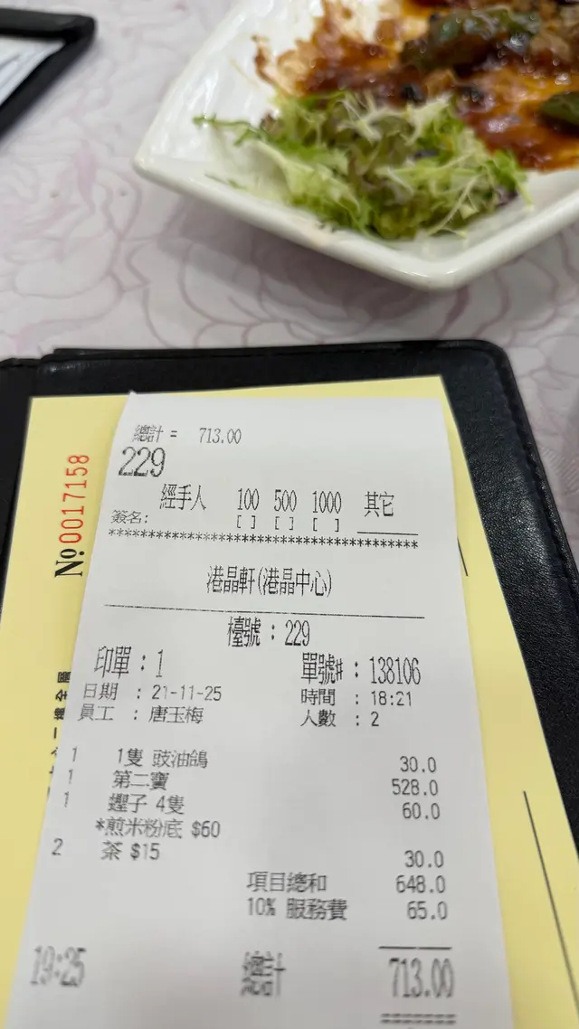 【✨尖東港晶軒|🥢抵食乳鴿|😋驚喜蟶子煎米粉】每隔一排都會和朋友約去港晶軒晚飯,因為地點方便,而且好抵食,經常都有優惠,今期至堅優惠有:🫶🏻$15半隻頭抽乳鴿🫶🏻$98胡椒花膠燉雞湯🫶🏻$98滷水拼盤./頭抽乳鴿乳鴿香味撲鼻,頭抽甜味覆蓋着乳鴿,乳鴿肉嫩多汁,調味好好,完全不需再加鹽。.晚餐孖寶/蟶子煎米粉蟶子豉椒繪,彈牙惹味,最欣賞係煎米粉,煎得乾身香口,米粉已由廚師切好成薄餅三角形,豉椒汁沾滿脆米粉,香脆可口。./上湯焗龍蝦龍蝦開邊煮,上碟時分開兩小碟,再淋上上湯,用刀叉食更顯優雅。./糖水最後經理向我們致送綠豆沙糖水,甜味適中,綠豆煲得起沙,完滿結束一餐晚飯。.…查看更多
