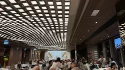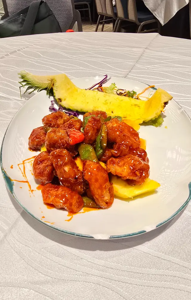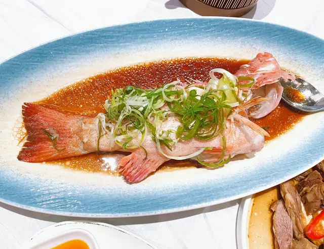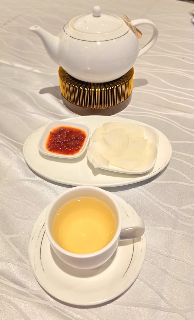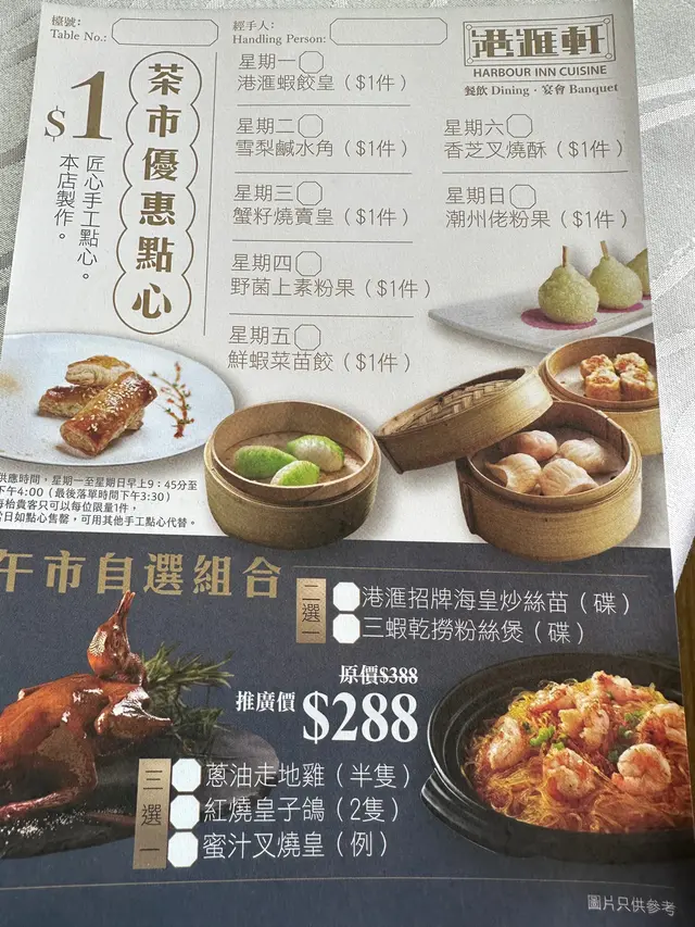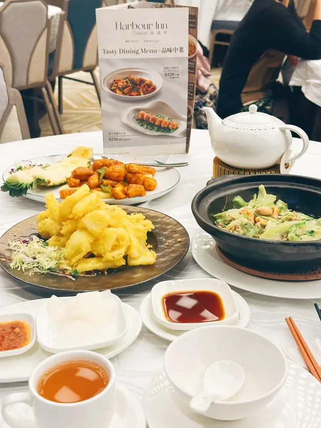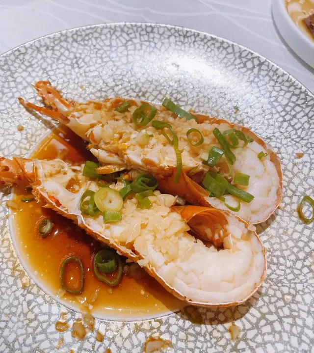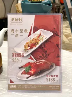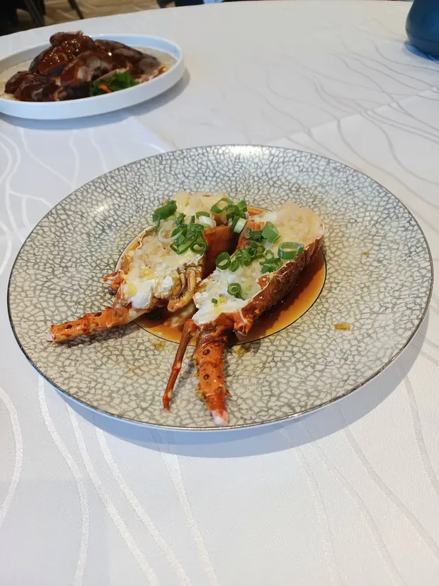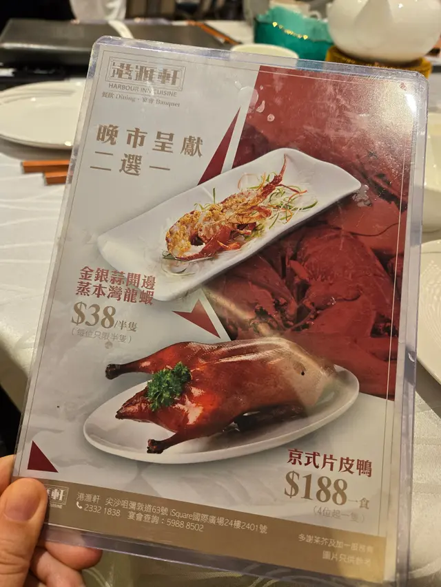 今晚放工約了朋友在尖沙咀食晚飯, 預祝中秋, 特別揀了一間近地鐵站的酒家. 港滙軒, 酒家門面闊, 裝潢亮麗. 裝潢甚有氣派, 燈飾設計靚, 面積大, 樓底高,重有 270 度維港海景, 食飯看美景, 賞心樂事.大廳設有四人圓枱, 亦有十多人的大圓枱, 氣氛好好.廳堂高雅大方, 適合朋友, 家庭飯局聚會, 喜宴聯歡. 部長送來餐牌, 大家看看, 有魚翅, 鮑魚, 燒味, 海鮮, 小菜, 選擇無難度. 晚飯有散叫, 亦都有套餐, 豐儉由人.招呼親切, 先開茶及送上花生小食, 我們點了鐵觀音茶, 水滾茶香.今日有晚飯呈獻: 御廚組合 $488, 有龍蝦半隻, 燒鵝或潮式滷水鵝, 好岩食啊.先送上 金銀蒜開邊蒸本龍蝦, 一隻, 每位半隻. 龍蝦新鮮, 厚肉香甜, 龍蝦肉質爽口彈牙, 蒜香好味. 真不錯.潮式滷水鵝, 伴有 滷水豆腐. 滷水鵝色澤鮮明, 肥瘦適中, 油潤軟滑. 用上正宗潮式古法鹵水汁烹煮, 鵝肉好入味, 肉質油脂感都豐富, 嫩滑可口. 鹵水香料咸度適中, 調味好好.鵝肉去骨好入味. 又稔又好食.碟底有鹵豆腐, 同樣鹵得入味, 又滑又有豆香. 清蒸東升斑一條, 熱騰騰上, 好鮮呀. 時間蒸得岩岩好, 魚肉嫩滑有彈性. 肉質鮮美, 充滿魚味但又不會腥, 配以豉油熟油綻的蔥花, 更香, 更美味.絲苗白飯, 用上鍋仔蒸飯, 粒粒分明, 更有飯香, 伴上東升斑一起吃, 好滋味.餐後送甜品, 蓮子紅豆沙, 每人一碗. 紅豆味香濃, 不太甜, 好滿意.酒家環境舒適, 食物價錢公道, 烹調很好! 店員服務態度認真, 值得再來.…查看更多