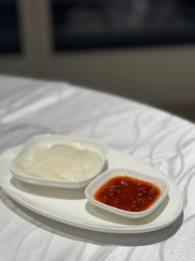 今晚同朋友尖沙咀行街,有點累,看下時間差不多吃晚餐,想去那兒吃,之前一直想去這間吃,就即興上了去,上到去,環境好有舒服感,高空看到夜景,坐位寬倘,坐下,看了一會餐牌叫了大排檔椒鹽花姿片