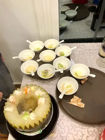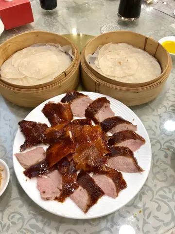 冬瓜盅, 港潮樓裝修未算豪華麗但係 ,食嘢最緊要係睇食物嘅質素同埋廚師烹調嘅手法。片皮鴨 !片皮鴨皮薄餡靚 ,鴨肉咬落去有啲汁啲出嚟。豉油王炒麵 呢度嘅時候王炒麵當然唔同海皇粥或者喺街邊度買嗰啲喇,用嘅豉油辣醬都係上等高級嘅,絕對係富豪名人飯堂。