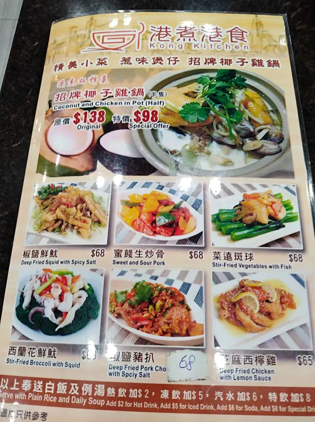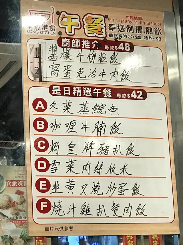 同朋友喺深水埗珠仔街工作完,順路喺附近覓食,於是試一試呢間茶餐廳。小店不大但算乾淨整理,二個人點左蝦醬通菜,椒鹽鮮魷以及店員姐姐推介嘅蜜餞腰果牛柳粒,每個小菜都附送白飯例湯。一上菜已有驚喜位,冇茶記求求其其炒埋一碟嘅感覺,老闆用炸米粉沙律菜伴碟,有酒樓小菜嘅質素。第二個驚喜位係蜜餞腰果牛柳粒,老闆用料大方,牛柳粒肉質軟滑非常多汁,唔係廉價牛肉,加上甜甜地的腰果,值得一讚。蝦醬通菜好惹味,蝦醬汁送飯一流,每餐必需要食菜嘅我,表示滿意。而椒鹽鮮魷則稍嫌粉漿厚左少少,食到最後有少少硬,建議要趁熱食,卜卜脆。整體都覺得滿意,兩個人食到好飽都係200蚊左右,下次再試埋招牌椰汁雞煲!…查看更多