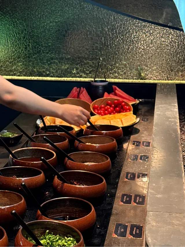 很喜歡湊湊大圍分店環境·午餐新品有驚喜! foodi3_yooyoo等級42025-08-242K 瀏覽 關注 很喜歡圍方「湊湊火鍋‧茶憩」的餐廳環境,有深海水族館的獨特氛圍,從流線型的設計到若隱若現的水紋投影,都散發著低調的奢華與雅致,讓人在品嚐火鍋與茶香的同時,彷彿潛入了一場深海的綺麗幻夢,令人沉醉其中。全新~ 新台式午市定食套餐 + 半自助 $78起.ᐟ跟餐有配菜、肉丸菜湯、甜品,自助區有新鮮的時令水果、惹味開胃的前菜,還有經典台式滷肉飯😋 好豐富~ ⚛︎ 一品海皇大閘蟹粉麵 $118/ 社交平台粉絲價1份蟹粉有4隻大閘蟹的精華,還有鮑蝦雙鲜,真是鮮味倍增呀🆙🆙 如此鮮香美味的蟹粉麵讓人一試難忘!⚛︎ 關西白鰻魚燒鍋 $108/ 社交平台粉絲價白鰻魚肉細膩綿滑,而且優質白鰻的確無土腥味,但唯獨是多少少軟骨,要小心食♡ 白鰻魚以小鍋蒸煮,底下鋪滿粉絲、配菜,吸滿魚汁鮮味yum!午餐可以半價加購茶飲.ᐟ每次必飲湊湊經典大紅袍珍珠奶茶。店員推介新鮮即製的芒果沙冰亦不錯,芒果香甜不膩,又解暑。另外,繼「湊湊火鍋‧茶憩」6週年慶限時優惠之後,餐廳推出了「台灣夜市下午茶‧宵夜自助任飲任食」 $128/位起,有洪湖大閘蟹粉麵、幾十款台式美食及台式手搖茶、日本三得利冰啤,可供任飲任食,無限狂歡🎉 與朋友相聚於此,飲幾杯,吃幾款小食,已經輕鬆回本(๑˃ᴗ˂)ﻭ 實在抵食!…查看更多+ 3以上食評乃用戶個人意見 , 並不代表OpenRice之觀點。讚好分享很喜歡湊湊大圍分店環境·午餐新品有驚喜! 湊湊火鍋‧茶憩 (圍方) https://s.openrice.com/QrbT0sHbU00檢舉 張貼 評分5味道5環境5服務4衛生5抵食用餐途徑堂食