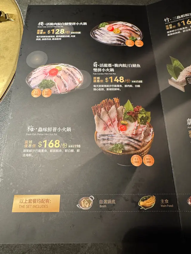 🐟活魚鮮宴‧手工現切午市小火鍋午市套餐 eatislove等級42025-10-22748 瀏覽 關注 湊湊火鍋🍲最新推出全新活魚套餐🐟🐟每日鮮活即劏,即叫即切,唔留過夜😌 午市套餐包咗自助吧,任食時令前菜、水果、滷肉飯。🔸鱻味鮮薈小火鍋套餐🐟🐟🐟呢個餐有鮮沙巴龍躉魚、鮮脆鯇魚、鮮白鰻、鮮活海鮮(蝦、蜆),湯底揀咗信州百年味噌白玉湯鍋,味道唔會太鹹,可以食到魚嘅鮮味,越煮越濃最後食蔬菜、麵就可以吸收湯底嘅精華👍🏻三款魚各有特色,龍躉肉質軟嫩,無骨啖啖肉啖啖,脆鯇魚,口感爽脆!鰻魚第一次用嚟打邊爐,肉質軟嫩,不過食嘅時候又小心又細骨。🦐蝦仲好新鮮上枱嘅時候仲好生猛咁郁緊🙀套餐仲包咗蔬菜、丸拼盤、麵或飯,我要咗南瓜麵,吸收咗湯底精華,有啲似食品味噌拉麵😝新推出台式午市定食$78起‼️就算唔想打邊爐都有幾款午市定食。🔸一品海皇大閘蟹粉麵套餐🦀秋風起嚟到大閘蟹季節,食蟹粉麵就啱晒!用左四隻蟹的蟹膏製成蟹粉,配料有鮑魚、蝦,鮮味十足!套餐仲有甜品、蔬菜…查看更多+ 8以上食評乃用戶個人意見 , 並不代表OpenRice之觀點。讚好分享🐟活魚鮮宴‧手工現切午市小火鍋午市套餐 湊湊火鍋‧茶憩 (圍方) https://s.openrice.com/QrbT0XkXU00檢舉 張貼 評分5味道5環境5服務5衛生5抵食用餐途徑堂食