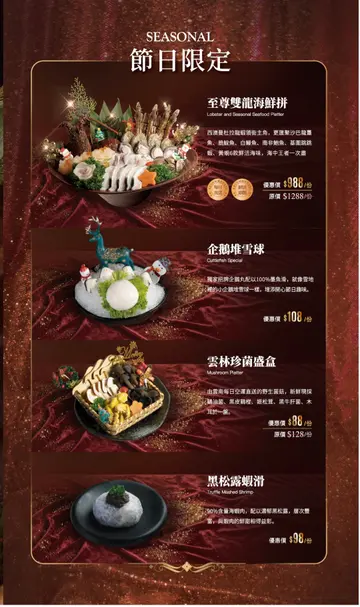 惠顧特定推廣套餐或不可賺取「亞洲萬里通」里數。請預先向個別餐廳查詢。