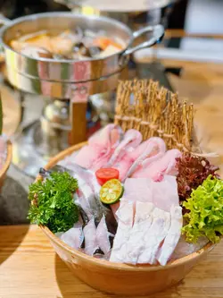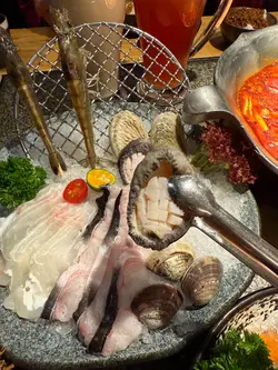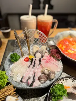 天氣涼涼地最啱打邊爐昆布文蛤鰹魚鍋/台式麻辣鴛鴦鍋昆布湯底鮮甜清澈,加上鰹魚帶點魚香鮮甜味海鮮拼盤:拼盤以魚為主題,集結沙巴龍躉、脆肉鯇與活鱔三種魚肉,口感各具特色。沙巴龍躉滑嫩細緻、脆肉鯇鮮甜多汁、活鱔則入口即化,三款魚味覺層次豐富仲有海蝦同鮑魚,鮑魚爽口彈牙企鵝賞月墨魚漿製成,賣相好特別月亮嘅造型係蝦滑配蟹籽,香濃蝦味又彈牙萵筍,爽脆又多汁大紅袍奶茶茶底厚實,加埋奶好香滑紅𩐳蘋果桃 清爽果香不會太甜最後仲有紅豆布甸同香橙乳酪沙冰夠晒Refreshing …查看更多