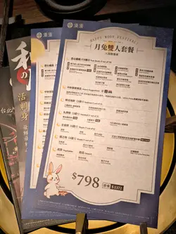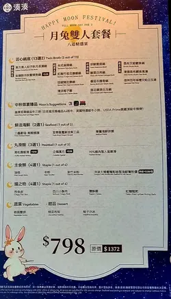 我哋嗌咗中秋節期間限定嘅「月兔雙人套餐」,有8道菜式啲菜名有意頭又貼題
