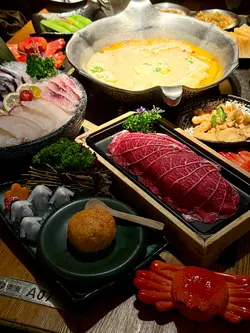 湯底嗌咗「金縷醉月秋蟹煨魚鍋」,奶白色魚湯內有杞子豆腐竹笙龍躉片,足料甜潤,另外上嘅蟹膏用蟹型瓷盒裝著,可以加入湯或點食物增加鮮味家人喜歡食牛,點呢個「王牌至尊極品牛三拼」,有齊日本鹿兒島A4和牛、 美國牛頸脊及美國牛小排,牛肉優質淥幾淥就食得,牛肉味道濃郁,口感酥軟油脂極豐我不嬲都係魚痴,「至尊龍躉鮮活魚三品」啱晒我口味