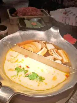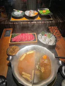 一盤各有白鱔片、沙巴龍躉和脆肉鯇,個人首推白鱔肥美脂香滑溜,龍躉魚味鮮濃肉厚,脆肉鯇則爽脆魚味清甜打邊爐點少得“滑”“丸”?「企鵝賞月」個名既‘食’字個樣又cute,「企鵝丸」就係用黑白墨魚膠整,淥熟口感Q彈滿滿墨魚鮮美味,‘月亮’指嘅係「飛魚籽墨魚滑」,好好食㗎啲魚籽脆卜卜墨魚滑又彈牙間場炸物小食「野生比目魚柳」幾香酥惹味、一啲都唔肥膩食到咁上下落個「新竹米粉」索下啲魚湯,又爽又滑𠽌𠽌聲咁食再加啲皇帝菜油麥菜撈魚湯米粉好