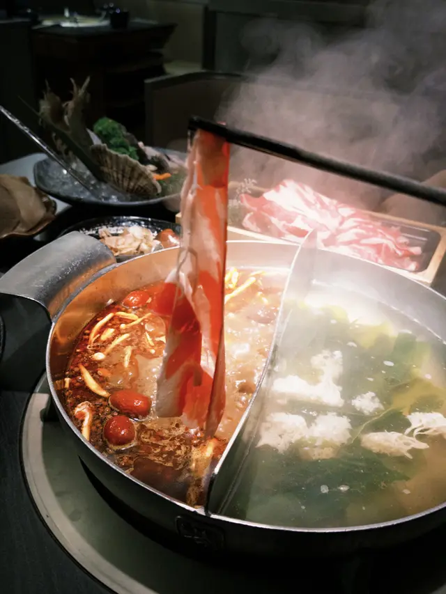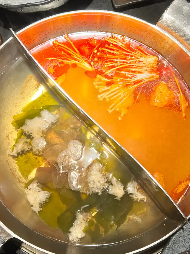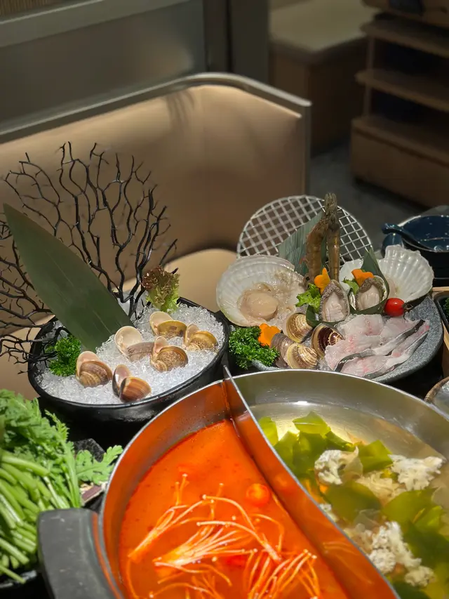 ❤️‍🔥 = 極力推介的單品✌️昆布鏗魚鍋 ❤️‍🔥x 台式麻辣鍋華麗海鮮拼盤貓爪蝦滑❤️‍🔥新鮮白鱔片美國特選牛肩胛❤️‍🔥毛肚皇帝菜茉香珍珠奶綠大紅袍燕麥奶茶自助區:飯,芋泥地瓜球,水果等等🔸呢間火鍋店嘅人氣一向都幾高,今次一試真係出色😁🔸首先講吓個鍋底,佢哋嘅昆布鏗魚鍋同台式麻辣鍋都係一絕。個昆布鏗魚鍋清香無比,啖啖鮮甜❤️‍🔥而台式麻辣鍋就香辣過癮,辣得有層次🔸海鮮拼盤真係華麗,大大隻蝦、肥美鮑魚、新鮮帶子,咩都有齊,睇到就已經流晒口水。講開海鮮,仲有新鮮白鱔片,肉質爽彈有嚼勁,配埋個昆布湯底,簡直係絕配。另外驚喜嘅係貓爪蝦滑,蝦味濃郁,口感滑溜😁🔸肉類方面美國特選牛肩胛肉質鮮嫩,油花分佈均勻,煮幾耐都唔會老,一啖咬落去就知道係高質素嘅牛肉😎毛肚就脆口爽滑,煮得just right嘅話真係無得輸🔸蔬菜我就揀咗皇帝菜,吸足湯汁都唔會變晒形;最後講吓飲品,我揀咗茉香珍珠奶綠同大紅袍燕麥奶茶。茉香珍珠奶綠香濃滑溜,啲珍珠夠晒彈牙;大紅袍燕麥奶茶就香氣撲鼻,茶味香濃,配埋燕麥更顯醇厚,真係唔錯!最後餐廳仲有個沙冰同甜品送😋查看更多