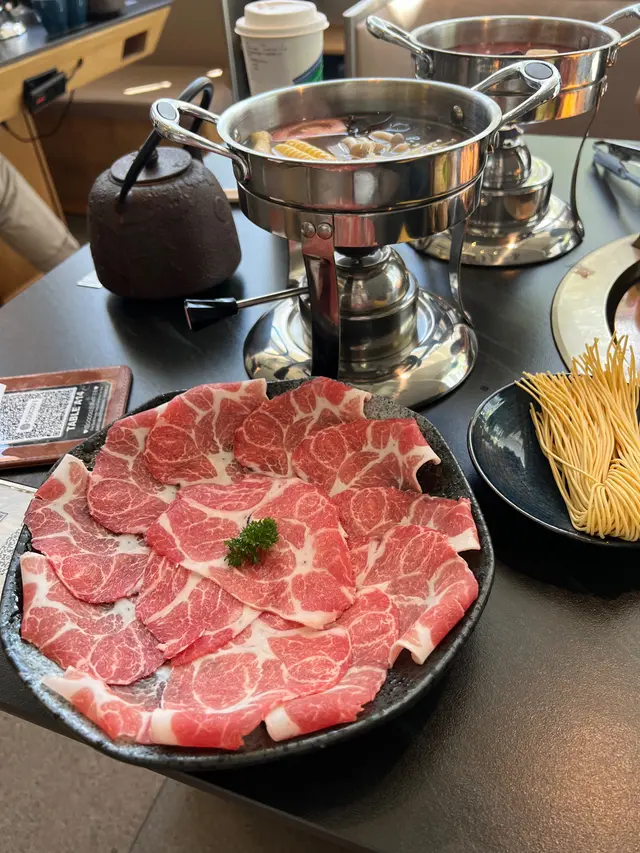 原來湊湊午市咁抵食♪(´ε` )係咪我太遲發現啦伊比利亞梅花豬小火鍋 🐷$118美國特選級牛板腱小火鍋 🐮$118每個小火鍋set都包一份蔬菜同麵食仲有個小甜品 豆腐花紅豆 重點來了 就係午市都有的自助吧任食🥹有辣魚皮 辣炒菇 滷肉飯同水果 魚皮好有口感 調味都適中 仲有聽講係太古分店先有嘅就係炸芋泥波波 都係任食🤭 剩係食個自助吧都好滿足而小火鍋嘅配料就正常發揮啦 不過呢個價錢 坐得舒服 又唔限時 我絕對會話係抵食🤩溫提大家 記得Book位🫡查看更多