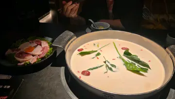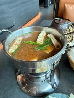 湊湊甄選 (AIRSIDE) 分店的環境相當舒適,裝潢高雅,座位寬敞。適逢中秋佳節🌙店內佈置充滿節日氣氛,掛滿燈籠和玉兔裝飾🏮🐇格外溫馨。餐廳提供多款超值套餐,最新推出的中秋套餐價格實惠、品質出色。此外,還設有自助小料吧,無限供應飯類、台式小食、水果等,CP值非常高!我們先點了「金縷醉月秋蟹煨魚鍋」湯底,搭配炸比目魚。湯底還附有一個造型獨特的蟹形蟹粉,這兩款都是放入湯中一同烹煮的。當然要先嚐原湯——魚湯香氣撲鼻,鮮美濃郁,口感順滑,我們每人忍不住喝了兩碗!之後再加入蟹粉,湯頭鮮味更上一層樓🤤,兩種風味各有特色。建議不必一次全部加入湯中,可以留一些搭配其他食材。「企鵝賞月」造型可愛,月光造型的蝦滑配上黑白相間的墨魚企鵝,不僅好看,味道也很讚😋。「特級美國牛板腱」牛味濃郁,肉質軟嫩,極力推薦👍!「味鮮薈」拼盤包括龍躉、脆肉鯇魚和鱔片,份量十足,非常新鮮。最後的甜品有乳酸冰和紅豆奶凍,乳酸冰酸甜清爽,非常解膩,為這一餐畫下完美句號。…查看更多