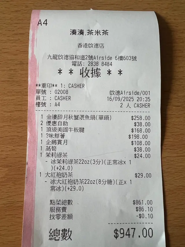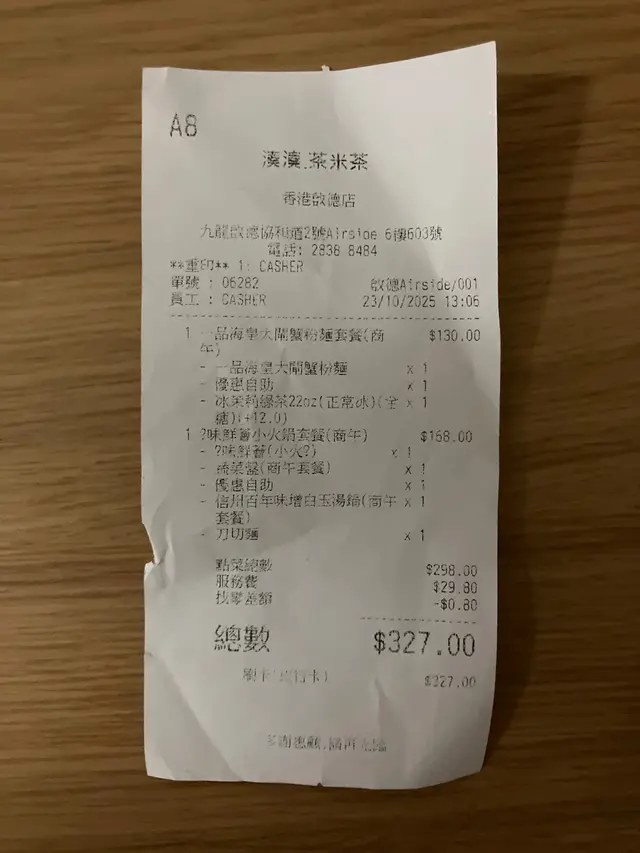 - 賺取之「亞洲萬里通」里數將根據餐飲與膳食消費,包括服務費、稅項及小費的總和而計算。