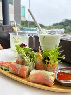 星期五晚揸架車入大美督,想chill 下冇咁多人,逃離下城市🤣 估唔到呢間真係有驚喜!食物+ 環境都good😌 下次真係有機會再黎!早啲嚟,門口泊車免費,門口大約有六個車位,唔知道另外一邊仲有冇,個裝修幾有心思,外面係一艘船嘅設計,而間餐廳真係對正湖,入邊個廁所都裝修得舒服企理😌 有室內同埋室外位,我哋見到涼涼哋,就坐咗室外,好舒服!最推介佢嘅火車頭 $102 牛肉湯底好清甜濃味,用靚牛丸,牛腱(懷疑係新鮮牛腱),牛筋入口即溶,簡直係我喺香港食過數一數二好食嘅火車頭,呢碗嘢市區價錢,但值得入嚟食🥰🥰小食拼盤 (細)$168 其實係三至四人份量,兩個人食到好飽,最驚喜係個扎蝦,彈牙鮮甜,另外個春卷都炸得好薄好脆,即使攤凍一陣,都仍然保持爽脆口感,其他小食就正常發揮,都係好食!🥰鮮蝦米子卷 $108 相對之下,呢個就係出邊市區都食到,但材料都豐富,即叫即包,蝦肉彈牙!😝椰青 $52 好清甜,靚椰青!😍龍眼冰 $46 個杯都幾大,配越南嘢就啱晒!😚…Read More