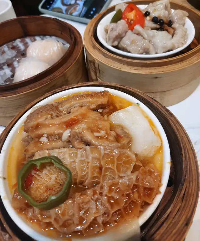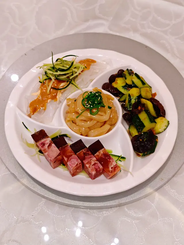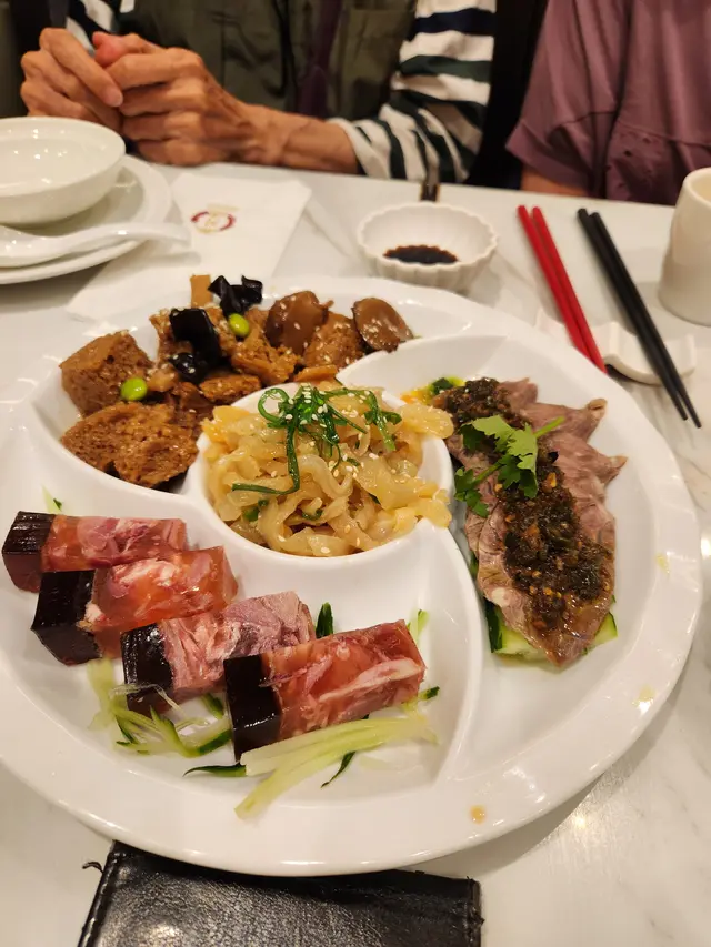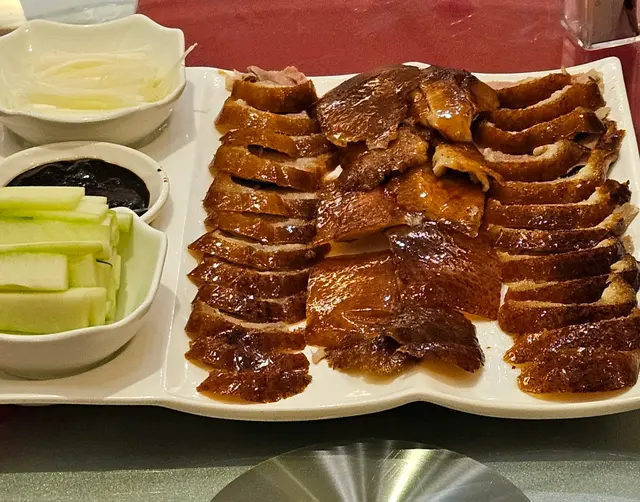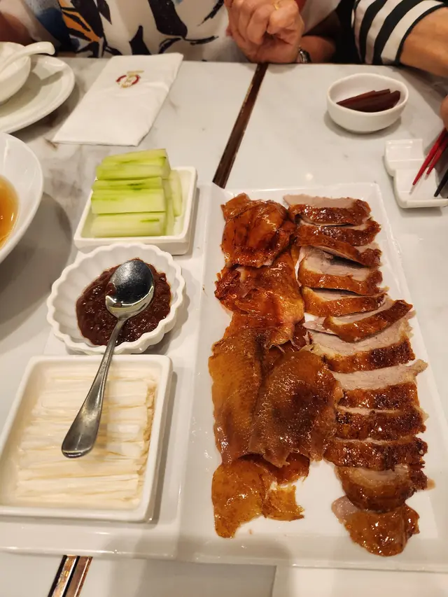 襯國慶和中秋一連幾日假期,提早和家人聚餐。一行六人訂了枱,唔使等位。我哋點咗八個餸。頭盤四式涼菜$118,份量一般,但有特色。北京填鴨(半隻)$88,加埋配菜醬汁包住食,唔油膩好好味。花雕醉雞$78,酒香雞肉嫩,份量足。懷舊魚香肉絲(跟薄餅)$80,炒得好夠鑊氣,小小辣好惹味。腿茸奶湯津白$85,一般啦。招牌小籠包六隻$72,熱辣辣好好味。三鮮鍋貼四隻$48,煎得香,唔會太油。甜品:高力豆沙六隻$69,好大隻,唔太甜啱啱好。最後仲送埋紅豆沙。呢間餐廳性價比非常高。啲嘢食又有水準。下次會再幫。…查看更多