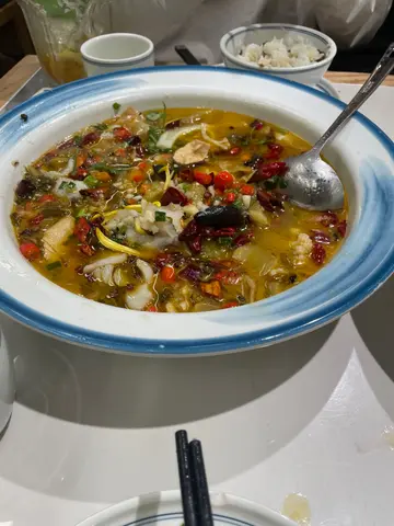 🐟 「洞庭湖剁椒魚頭」 絕對是湘菜之魂!大魚頭鋪滿紅黃雙色剁椒,蒸得魚肉嫩滑如豆腐,辣中帶鮮。女友吃得鼻尖冒汗還不停筷,直呼「這辣度是心動的感覺」,最後連墊底的寬粉都吸盡辣汁掃光~🌊 「老壇酸菜魚」 湯底酸辣醒胃!黑魚片薄如蟬翼,酸菜脆爽不死鹹,女友連喝三碗湯還搶我碗裡的魚片,嘟囔著「這鮮味值得破戒吃宵夜」!🔥 其他必點:▪️ 「土匪豬肝」 猛火快炒鑊氣足,豬肝嫩滑帶孜然香,女友說「這口感簡直是肝中貴族」~▪️ 「糖油粑粑」 糯米糰子炸得金黃,裹著桂花蜜糖,解辣又暖心~💯 服務湘味人情:• 小哥看女友辣到吐舌,主動送上冰鎮桂花蜜• 經理聽說她愛香口,多送一碟炸花生配酒• 結賬時塞了自製辣醬,連外賣盒都印著「吃辣英雄榜」人均150+食出湘西風情,#剁椒魚頭香辣封神 #酸菜魚湯底飲到舔勺 #服務讓男友變食神(✨秘訣:點魚頭加份手工麵,拌辣汁一絕!)