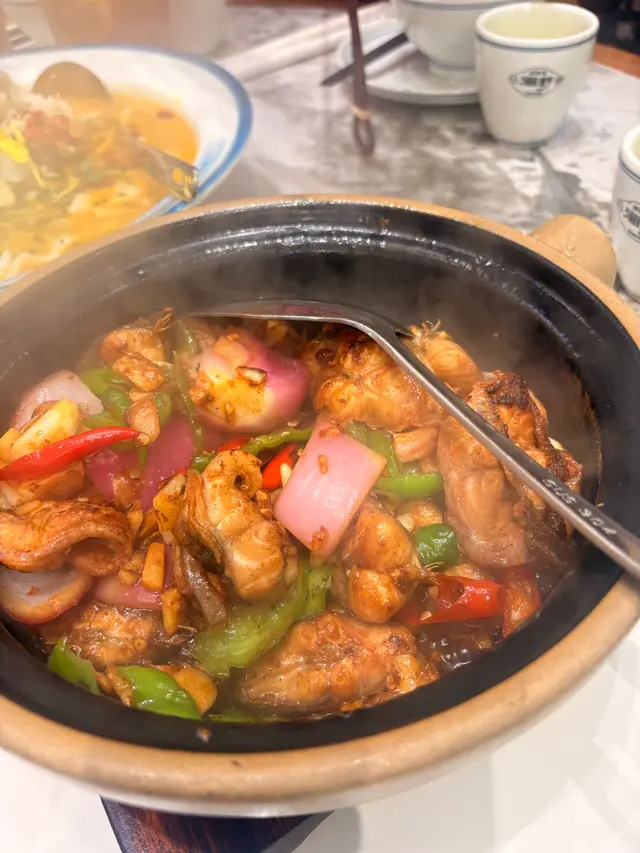 大角咀開左間湖南菜,帶媽媽黎試我鍾意佢既環境,企理乾淨,好多卡位坐,亦有窗邊位望風景前菜叫左個涼拌花甲份量係 勁 多,你當五餅二魚咁每隻殼都有肉,想搵隻空殼都無油麥菜,又係好大碟,夠四個人食呀炒得幾好,蒜香味出,可以改善既點係少返dd油就good手打鴨屎香檸檬茶廿令蚊,又係大杯到夠三個人飲呢杯野好正,唔會甜到傻,食完辣野飲返幾啖,勁解辣呀媽心心念念既啫啫牛蛙煲佢話好少地方有得食,估唔到呢到有而且以佢既經驗,佢話呢個牛蛙煮得好好雖然配料多,有d青椒呀 洋蔥,但牛蛙份量仍然係好多個人人生第一次食,食落少少似田雞,但肉質更軟蒜蓉粉絲蝦呢碟野正,一上枱,想話移下位影下相,隻碟仲係極熱佢d蒜蓉,塞爆,粉絲,塞爆完全誤會哂真係,我地以為係二人份量,原來係四人份量呢個價錢呢個味道真係唔知點輸田雞煲仔飯相對其它呢個飯較為遜色,我嫌d配料切得有d碎,但呢個只係個人口味,可能有人鍾意一口飯入面有好多好多料佢平時d午市客飯好似已經好抵食,下次試試佢!…查看更多