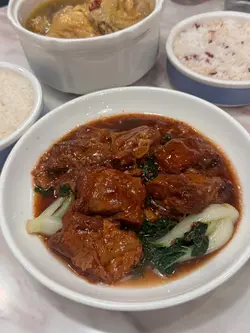 今天要介紹的餐廳位於筲箕灣,是一家主打湯飯家常菜既連鎖餐廳。餐廳提供既餐款都以清淡為主,目的想客人食得健康,而且價錢都唔算太貴,係度食飯有種食住家飯既感覺。二人燉湯餐$175套餐包括有一燉湯兩餸兩飲品湯-鮑魚姬松茸老雞呢個湯都好足料,有不少姬松茸同¼隻雞。啖湯飲落好清,感覺滋補。鹽焗雞鹽焗雞有半隻雞,好夠鹹香味,送飯一流。果醋汁豬軟骨豬軟骨份量好夠,而且炆到好腍,食落有酸酸甜甜咗飯飯可以選擇白飯或三色飯湯加地址:筲箕灣筲箕灣道393號形薈地下5號交通:港鐵筲箕灣站 A 出口, 步行約5分鐘…查看更多