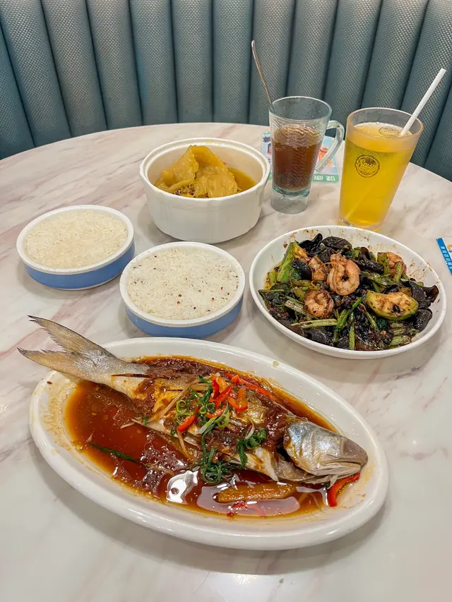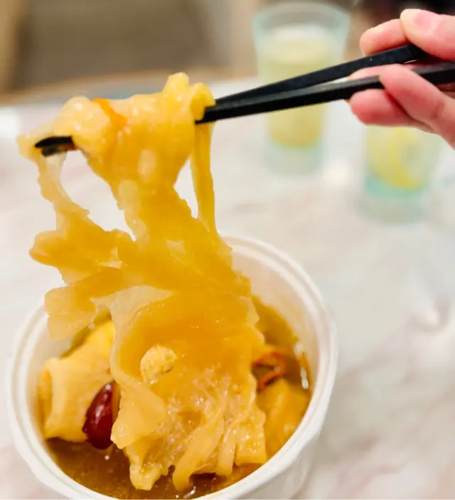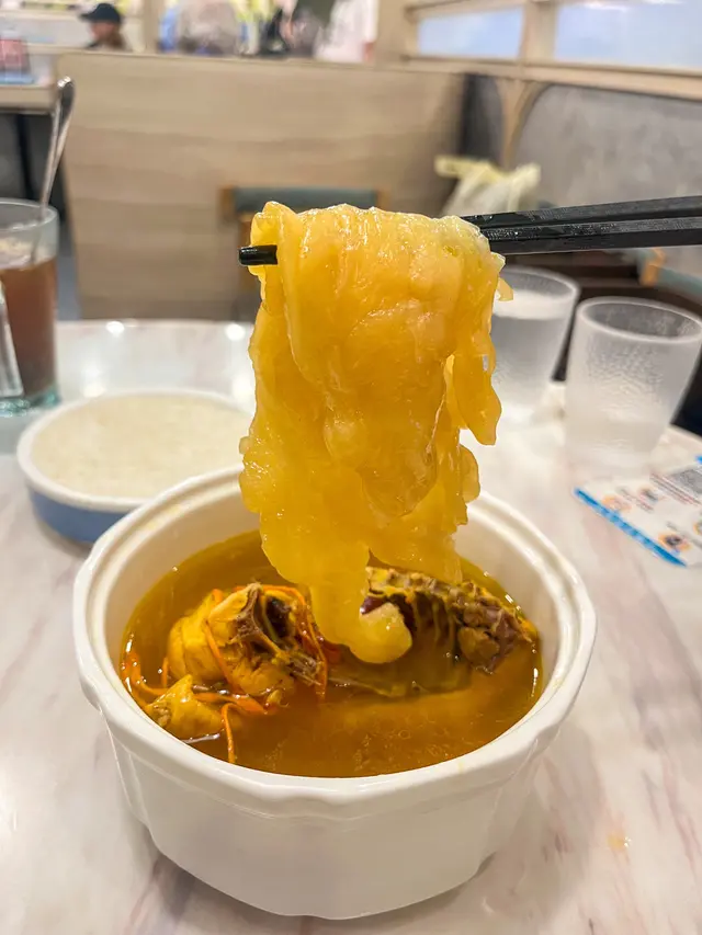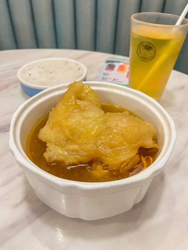 今次去了探親戚,帶佢地食清d~就去咗呢間位於筲箕灣的主打燉湯飯家常菜的連鎖餐廳吃晚餐,餐廳提供的餐款都以清淡健康為主,見到呢個幾抵食嘅二人餐,就叫咗嚟share~ 出示長者咭仲有九折優惠!👍🏻二人燉湯餐 ($175)套餐包括有1個燉湯、2款餸菜、2碗砵仔飯及2杯飲品,幾抵食!1. 蟲草花花膠魚肚燉雞湯燉湯非常足料!用上有手掌咁大塊嘅花膠、蟲草花及大大件爽口魚肚熬製而成,充滿骨膠原,再加上1/4隻雞,份量足夠3人份🤣,味道非常濃郁,秋冬飲就最啱,夠哂滋補!☺️2. 麵醬蒸馬友魚用上麵醬蒸馬友魚肉細嫩,口感細膩,不易散開!👍🏻3. 豉汁勝瓜炒蝦球鮮味十足蝦球爽口彈牙好新鮮勝瓜都好爽脆,味道唔會太濃,好健康🦐4. 砵仔飯:飯粒軟硬適中。5. 黑糖薑母茶6. 水蜜桃汁 (凍飲+$3)…查看更多