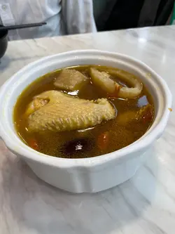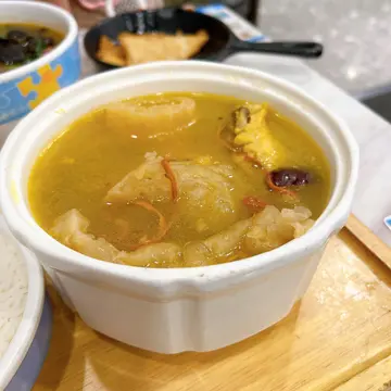 蟲草花花膠爆魚肚燉雞,燉湯配湯飯係我最常係呢間餐廳食嘅款式。呢款燉湯湯料十足,有滿滿嘅雞件,亦有大大舊花膠,魚肚亦係大大塊!湯底味道非常鮮甜,雞件口感都滑,口感非常大舊,完全感受到滿滿嘅骨膠原感!而魚肚亦係非常大塊,能夠吸收了湯的味道,十分美味!再把飯拌入一齊食,夠哂鮮味!