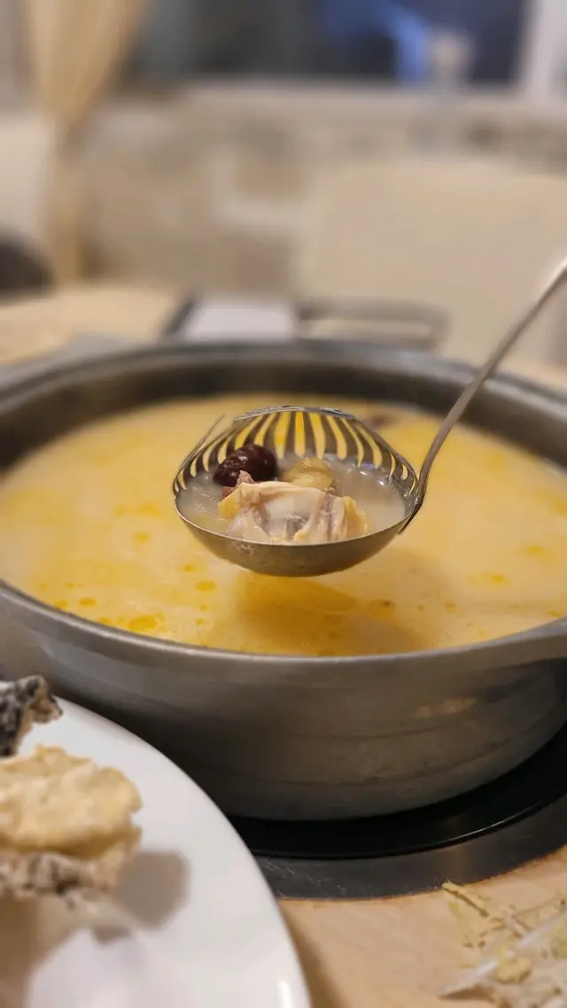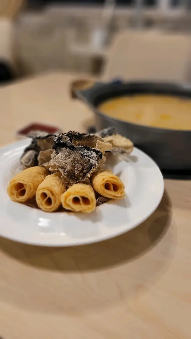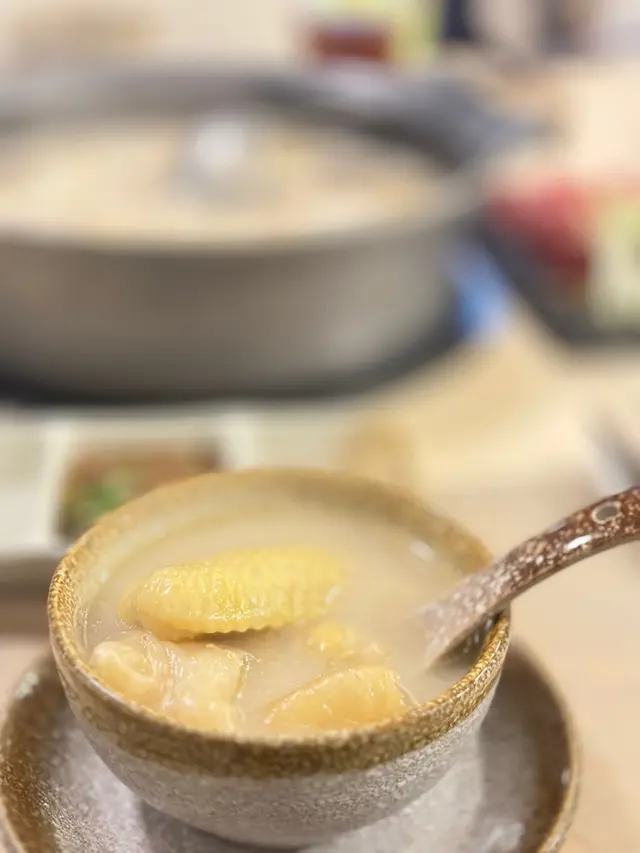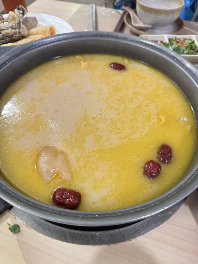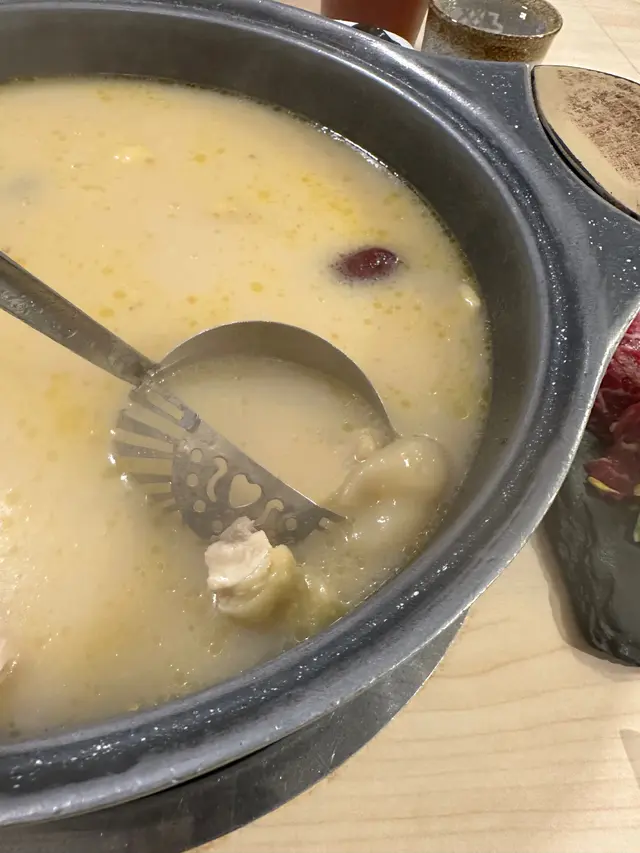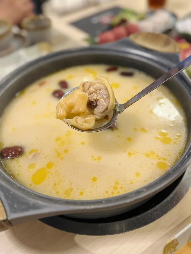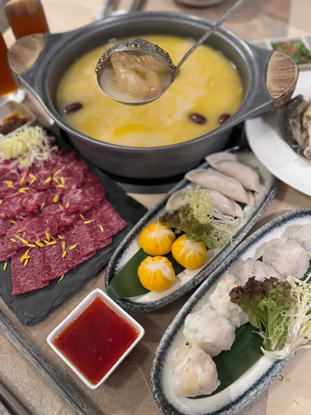 秋冬滋養養生必選,花膠雞港式打邊爐,係值得去的香港打邊爐! 招牌花膠雞湯底 ,性價比蠻! 真的滿滿的花膠 超級長一條!料超足花膠雞湯我覺得好好飲,我飲左勁多! 清甜的湯底更能體現食材本身的新鮮和口感! 🥩手切牛肉好吃!切成薄片肉質鮮嫩涮煮後口感滑嫩!! 響鈴,超脆超香口感和外面買來的完全不同一口咬下去吸滿了湯汁富有彈性艮啾超好吃! 菜新鮮! 煮熟後酥脆可口富含營養能中和火鍋的油膩感! 餃超級好吃皮薄餡大韭菜味很足很香餃子放在火鍋裡原來可以這麼好吃…查看更多