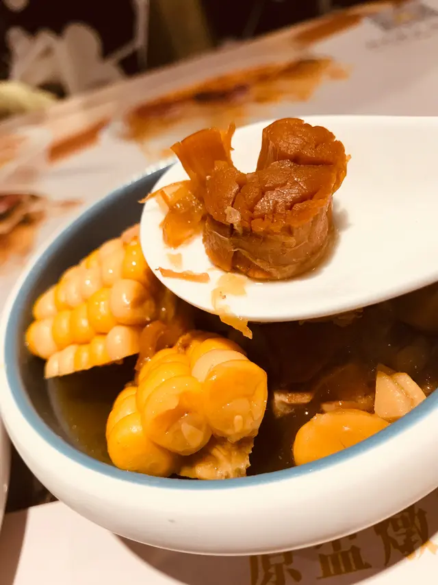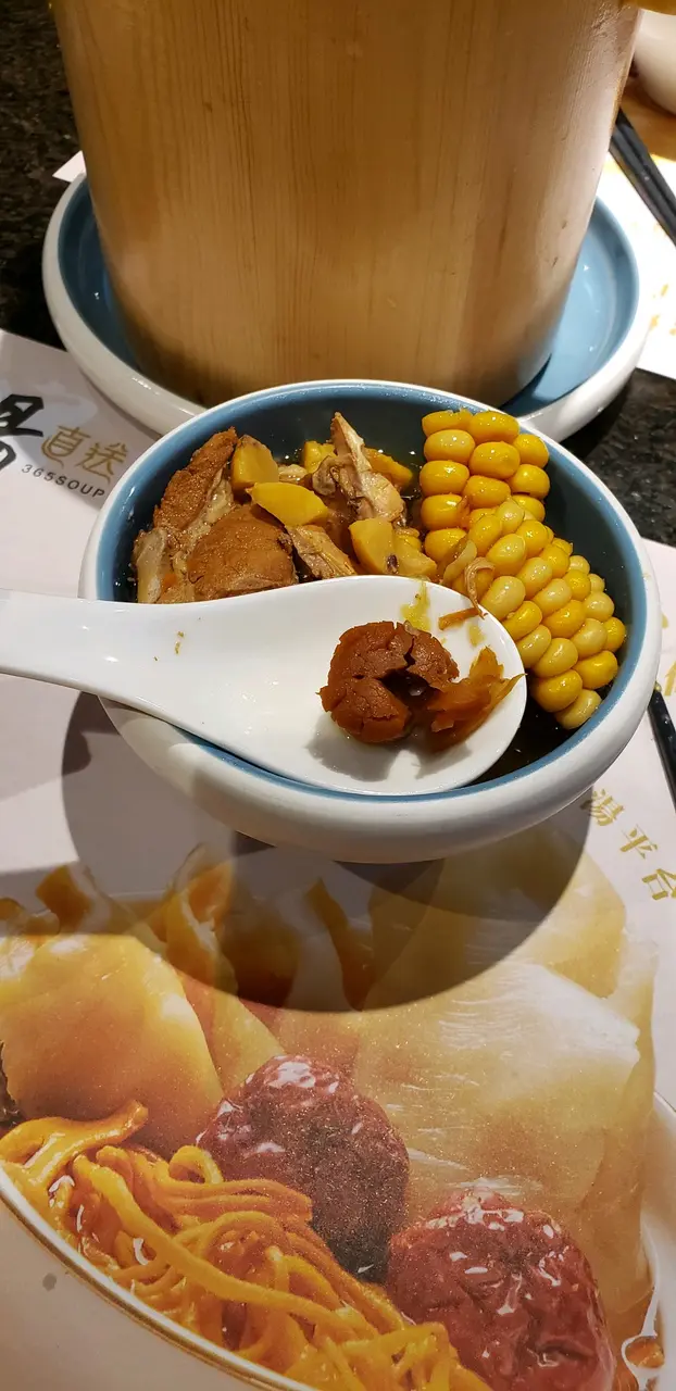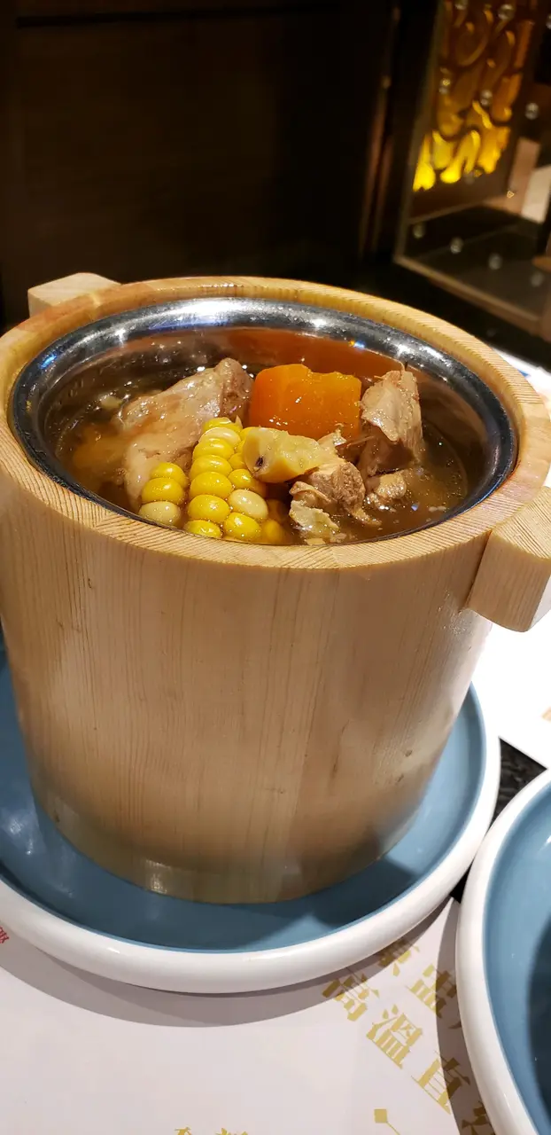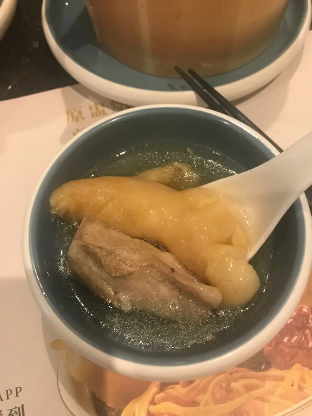 。2. 涼瓜黃豆燉唐排飲落有淡淡嘅涼瓜苦,除此都比較水,有好多排骨。3. 棷皇燉去皮雞貴少少果然係比較好味,個湯比較濃,有椰子味得黎再帶少少花膠味