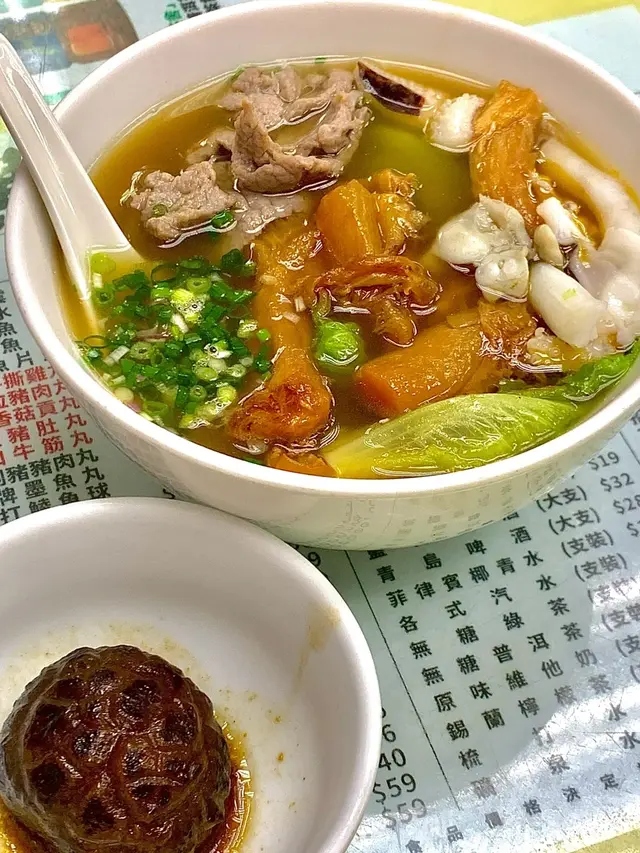 今日帶了從日本🇯🇵來港的表姐到西環馳名的潮式老麵店吃正宗鹼水麵🍜,這家老字號最少有50年歷史了,能夠屹立至今,必定有它的本事🥰這裡很細心備有中文、英文、日本及韓國的菜單,方便旅客點餐。全港獨有麵食🍜最齊全,而且多種丸子及麵食是自家製,非常有特色❗✨蠔皇正花菇幼麵這碗潮式粉麵🍜將簡約食材提升至藝術境界❗琥珀色的蠔油湯底清亮見底,蠔香溫潤甘甜,不死鹹不膩口,完美展現潮州醬油「鹹中帶鮮」的釀造功底💕花菇🍄🟫選料極講究,菇傘厚實如掌,經慢火煨煮後吸飽蠔汁精華。咬下時先是彈牙口感,隨即菌菇🍄🟫特有的木質香氣與蠔油鮮味在齒🦷間迸發,非常惹味❗幼麵細如銀絲卻韌性十足,掛湯力極佳,每一口都裹著蠔油香氣與菇🍄🟫汁精華,超有滿足感❗…查看更多