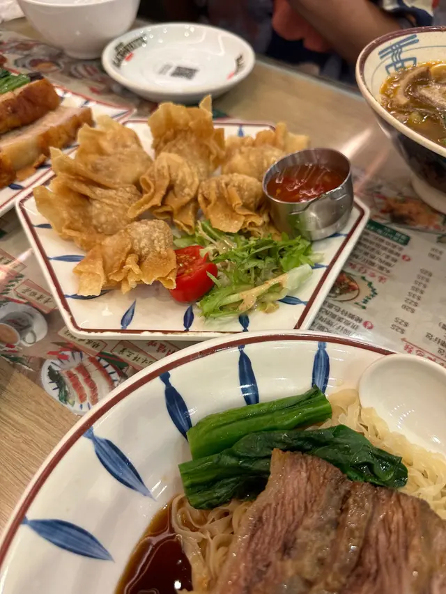 尖沙咀的「源記餐廳」係港式茶餐廳的經典代表之一,不但地點便利,更提供燒味、粉麵等馳名招牌美食。招牌「燒味二寶」是必點之選,蜜汁叉燒外層裹著誘人焦糖色,吃起來肉質軟嫩、甜而不膩,肥瘦均勻的口感令人再三回味。而「至尊燒鵝」則皮脆肉香,油脂豐腴卻不肥膩,搭配特製的梅子醬,將燒鵝的美味層次提升。若想嚐嚐人氣麵食,可以選「金牌牛三寶麵」,當中的馳名崩沙腩炆得軟腍入味、膠質滿滿,牛筋和牛肚亦滷得恰到好處,與彈牙的麵條一起入口,豐富的口感讓人滿足。另一道「上湯四寶丸」則完美呈現手打丸的彈牙功力,包括鮮味十足的手打魚蛋、爽口彈牙的墨魚丸、嚼勁十足的牛丸,以及清甜的汕頭魚餃,搭配清澈鮮甜的上湯,令人暖心。若想加一點小食,炸得金黃酥脆的「炸雞中翼」香氣四溢,外皮薄脆、內裡多汁,是配麵或飲品的好拍檔。餐後再來杯飲品,無論是解膩暖胃的「熱柚子茶」,還是冰涼暢快的「凍檸樂」,都為這趟港式美食之旅畫上完滿句號。…查看更多