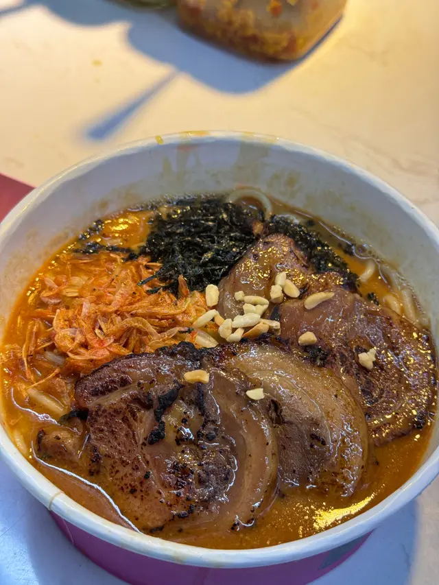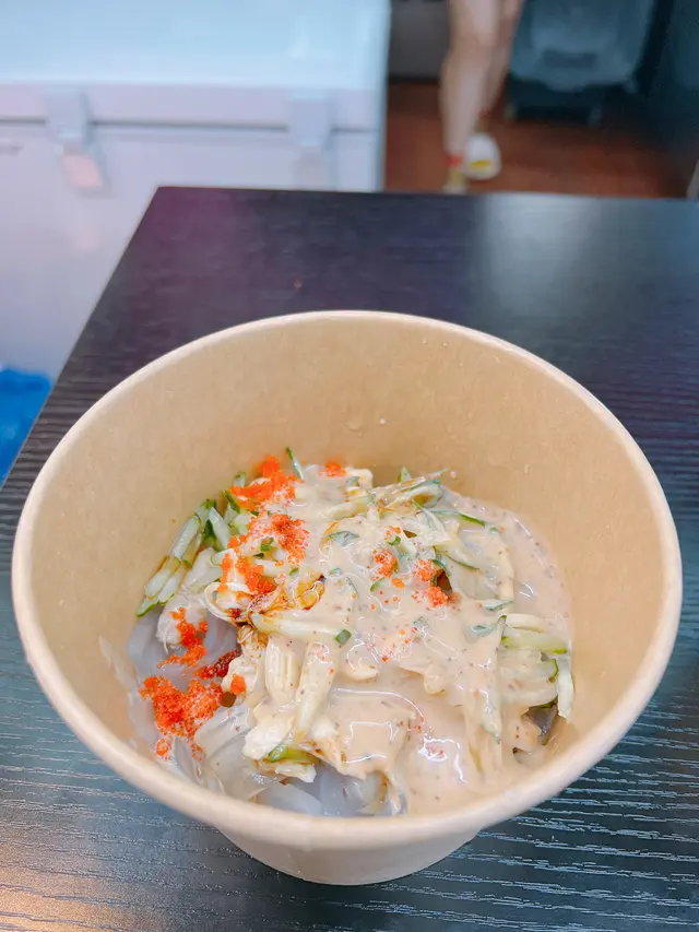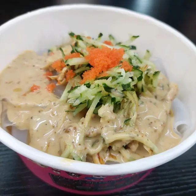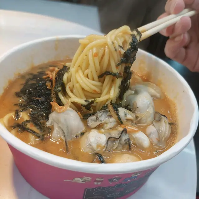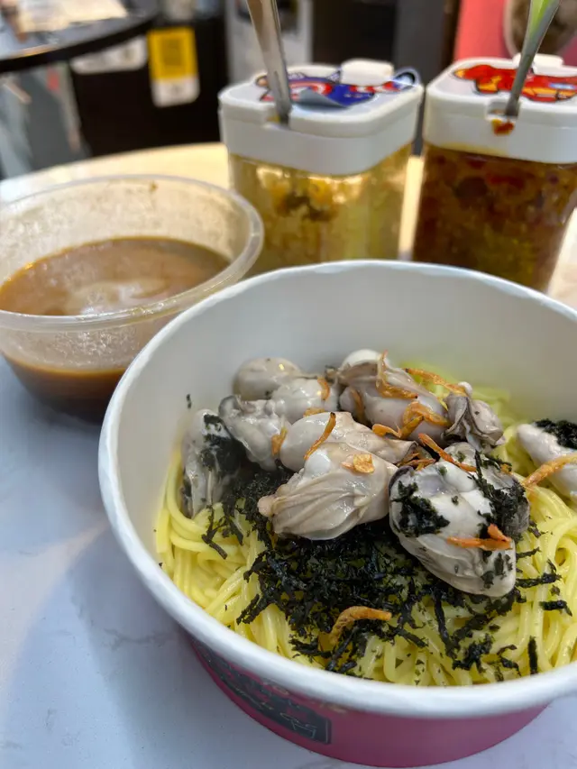 🦪蚵仔特濃擔擔麵$45擔擔麵湯底係🥜花生味加🤏少少辣味🌶️,湯底🥜花生味好突出,淨飲湯底都好飲👍🏽蚵仔🦪勁足料、又大粒😋咬落仲有少少爆汁,味道重海鮮味,幾正😋;不過擔擔麵同蚵仔都偏重味,🐻🐻❄️覺得兩樣夾埋做唔到相輔相成嘅效果,但都已經好唔錯~麵條用咗冷麵,如果你鍾意麵質有咬口啲就啱你,不過🐻🐻❄️都鍾意冧身麵條多啲🤣💁♂️份量💁🏽♀️如果想掃街食多啲唔同種類嘅食物,小鳥胃兩個人share一碗就夠啦🤣P.S.店主好有禮貌👍🏽👍🏽…查看更多