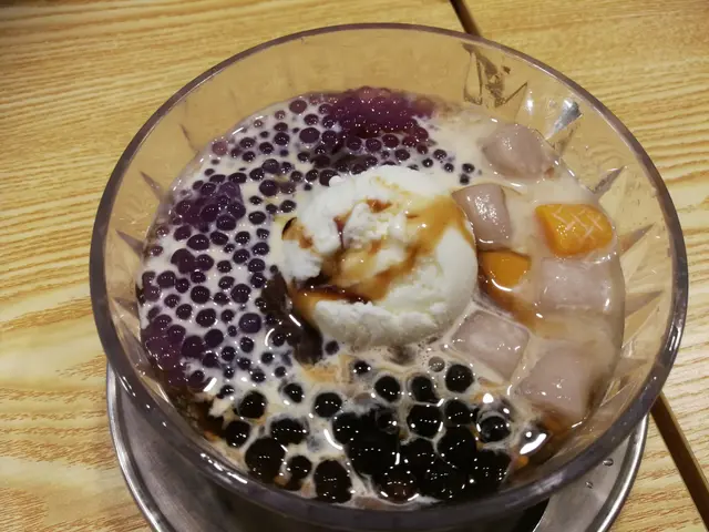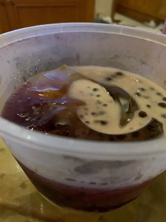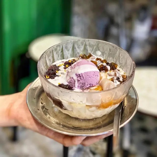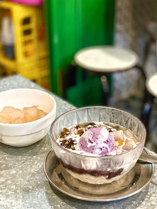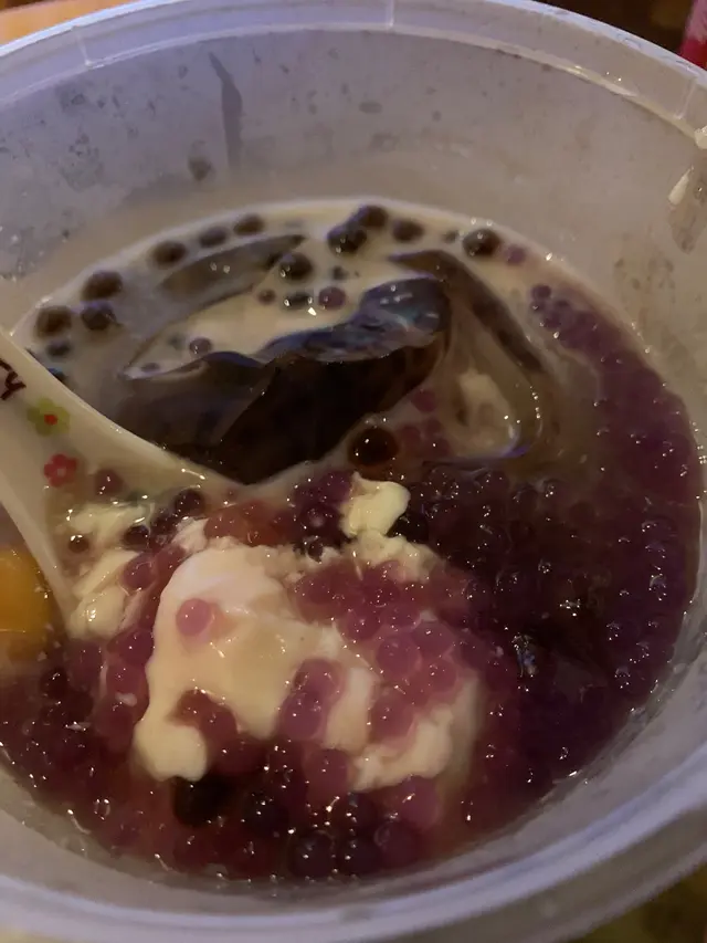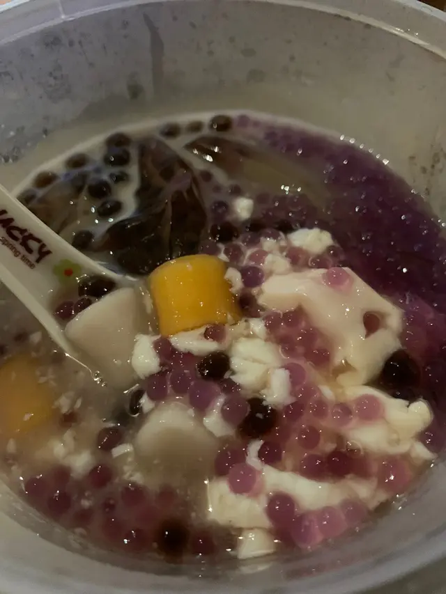滔滔甜品西環食好細,門口長時間都有人排隊。照舊帶餐具買外賣。點了叄元豆花,材料有豆腐花、芋圓、地瓜圓、黑糖珍珠和紫薯西米。另外再在雪糕、紅豆、芒果、愛玉四選一;而我選了無味但口感似涼粉的愛玉。由於用料豐富,令口感有多種不同的味道,芋圓、地瓜圓、黑糖珍珠的甜味亦食得出不同層次。豆腐花很香荳味,亦非常滑身,但跟愛玉的滑又有不同。若要跟附近的木子作比較,滔滔的口感是比較好的一間。食完才知道,原來滔滔甜品來自元朗,幸好跟721白衣人無關,不是藍店呢。…查看更多