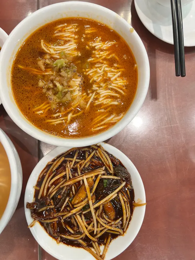 我哋叫左一個蒸小龍包,皮厚左d,一個炸銀絲卷,其實糸炸饅頭,以前就真係銀絲卷,一個燻魚麵,味道好嘅,但係細碟過以前好多,一個鱔糊擔擔麵,鱔糊太結,冇乜鱔,舒服乾淨查看更多