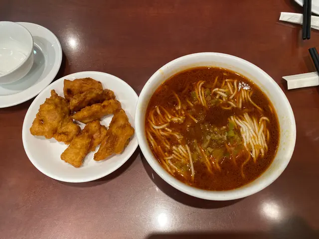 當日去食晚餐發現都多外國人黎食🤔有個店員姐姐幾nice,英文都好流利。🐟熏魚面 $52麵質可以,有彈牙的感覺,不會淋,湯底是正常清湯。但熏魚唔係我平時食嘅熏魚,我平時食開的是乾身的,佢呢度上面淋左汁酸酸甜甜類似茄汁嘅東西,我唔係咁喜歡🤔🍜排骨擔擔面 $56沒有肉碎的擔擔面,個底有花生醬,要記得撈混佢食。排骨都香脆,肉質正常偏硬。🥟鍋貼 $52會爆汁嘅鍋貼😮幾好味,不過個底可以煎得再香脆啲🤓查看更多