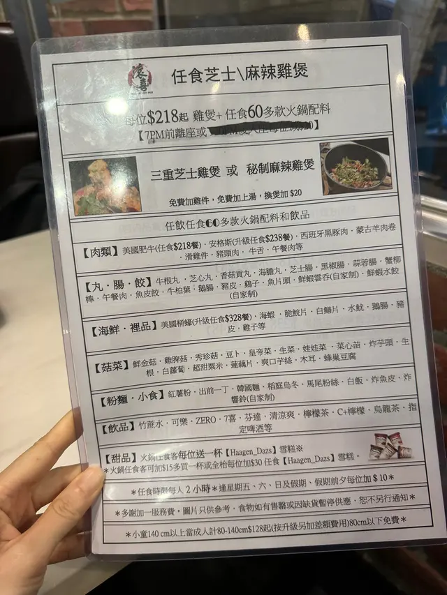 旺角性價比高雞煲火鍋店 Bonus_Foodie_等級42023-04-17193 浏览 关注 最近個太陽一落山又凍返所以一到夜晚就超想打邊爐咁岩朋友又想食麻辣雞煲🐥今日放工即刻去食!🛎 $218 任食芝士/麻辣雞煲麻辣雞煲有bb辣、小辣、中辣、大辣揀甚至連無辣都有😳一定有岩心水既辣度我地就揀左bb辣👍🏻唔會太辣得黎又好惹味!雞煲入面全部都係雞髀肉🤤件件都勁嫩滑加埋啲芫荽撈埋一齊超香如果未夠喉,可以再加雞添呀🐥🛎 +$20 高級安格斯呢個餐加20可以任食安格斯牛,性價比好高牛脂肪分布平均,唔會太多肥肉餐廳建議淥6-12秒~入口唔會韌,好易咬開😁🛎 小食類呢到既炸響鈴係自家制,係比平時食既更大卷,而且豆皮既香亦都較突出👍🏻索湯能力滿分💯而炸魚皮都咸香十足,直接食/沾湯食都唔錯🛎 火鍋配料呢到火鍋應有盡有,你講得出既都有🤣打邊爐一定唔少得芝心丸同芝士腸食個陣記得小心,因為芝士真係會爆出黎🤪我地仲加左兩次薯粉!呢到既薯粉唔洗煮好耐👍🏻好快煮熟,煙煙韌韌~自調既醬料有胡麻醬揀😍用黎撈薯粉係一流雖然已經好飽好飽,但都不忘要叫返啲蔬菜平衡下🥬🥦菜類好新鮮~亦都洗得好乾淨🛎 飲品飲野係自助的~要去門口既雪櫃拎想健康啲仲有zero coke揀🛎 Haagen Dazs 雪糕雪糕係一人一杯的有朱古力/曲奇/士多啤梨/夏季漿果味揀~🌐 環境/服務店舖非常大,座位好闊落,枱面亦都好夠位擺食物店員服務非常好,會主動過嚟幫手炒雞、加湯收到我哋嘅點單紙之後,好快會出到食物值得欣賞嘅係:我哋點幾多佢就俾幾多,唔會比少咗👍🏻仲要擺盤都幾靚🤣唔馬虎…查看更多+ 8以上食记乃用户个人意见 , 并不代表OpenRice之观点。赞好分享旺角性價比高雞煲火鍋店 滾喜火鍋專門店 https://s.openrice.com/QrbT0tH5900检举 张贴 评分5味道5环境5服务5卫生5抵食用餐途径堂食