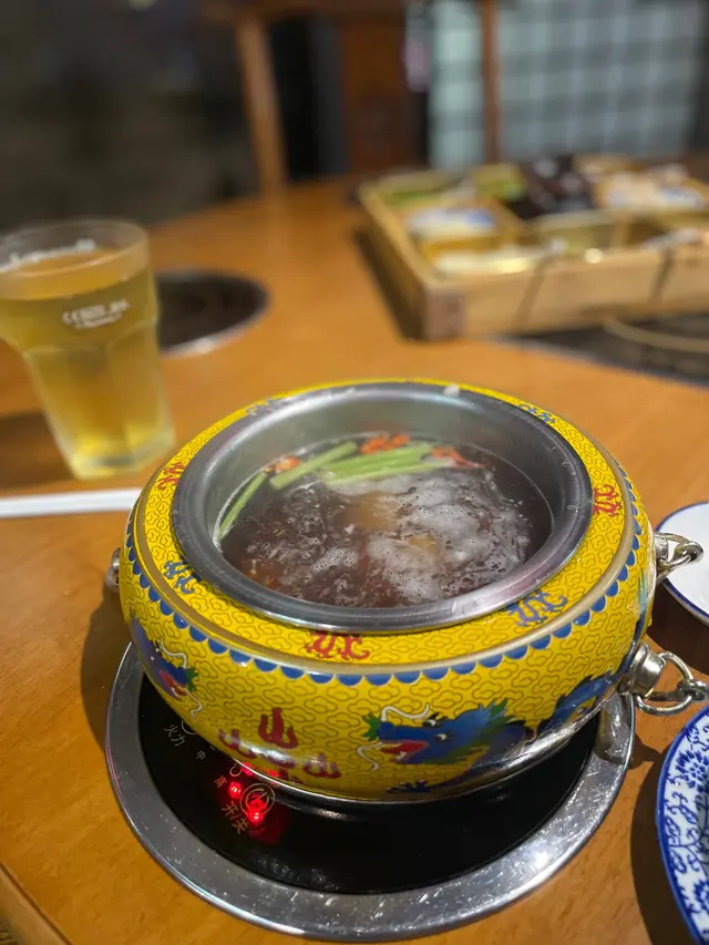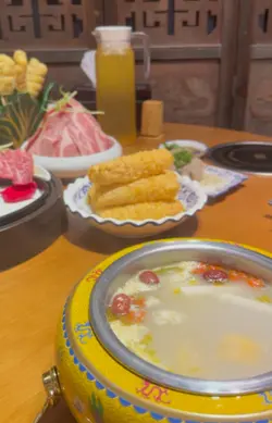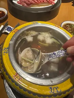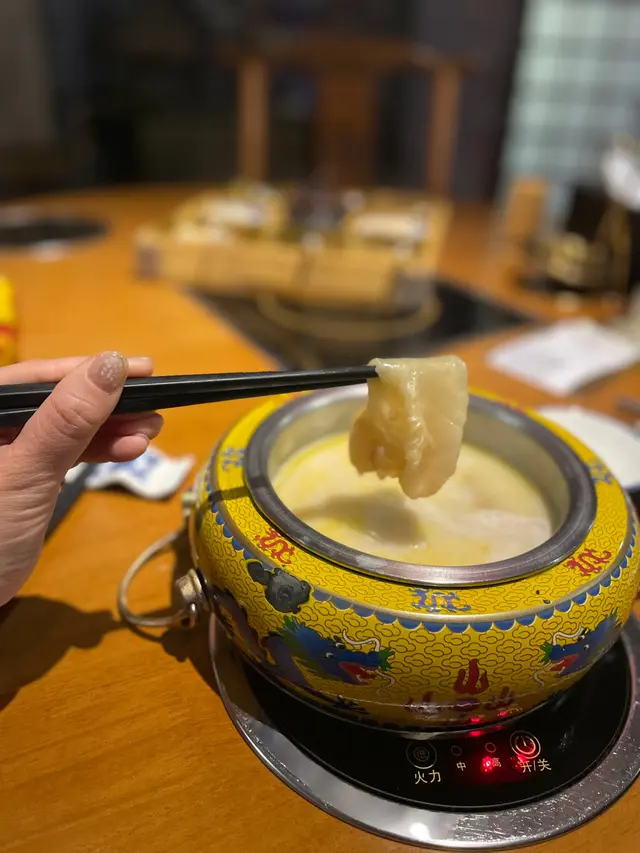 餐廳濃厚的宮廷風格貫穿每個細節,從雕花屏風、紅燈籠到仿古擺設,營造出華麗而有趣的氛圍。特別設有宮廷服飾及龍椅供客人拍照,打卡效果一流,連餐具也精心選用龍紋鍋與鍍金器皿。午市一人鍋設計幾貼心,可以自由選擇心儀湯底,乾淨衛生。餐廳強調每日新鮮熬製湯底及手工製作餃子、丸類,實際體驗亦能感受到真材實料。🥢康熙花膠雞湯底:湯色金黃濃郁,花膠軟滑,雞湯鮮甜不膩,涮食材前先喝一碗十分滿足。🥢順治特色卜卜蜆鍋:蜆量充足,湯底帶蒜香與清酒氣息,海鮮風味突出。試了兩款套餐,整體分量充足,食材配搭見心思:瓏套餐:日本A5黑和牛油花均勻,輕涮數秒入口即化;手打黑松露野菌鮮蝦丸松露香氣足,蝦肉彈牙;紫皇蟹粉豚肉餃蟹味濃郁,值得一試。鼎套餐:伊比利亞橡果豬肉質甘香,手打紫薯流心豬肉丸創意十足,芋泥豬肉餃綿密香甜,日本蟹柳與風琴豆腐吸湯能力強,入味非常。🥢套餐已包飲品,無糖可樂搭配清爽解膩。🌟餐廳以獨特的宮廷主題打造出別具一格的用餐體驗,無論是午市獨自享受一人火鍋,還是與同事共進商業午餐,都可以找到滿足感。…查看更多