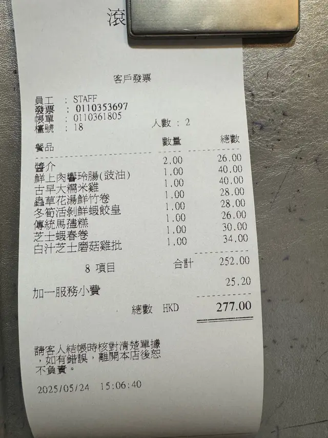 天后這家茶樓,是最近的秘密發現!!點心選擇十分多元化!!而且好抵食。。。連迷你漢堡包都有、煎堆仔的餡料好特別。。。有麥心在中間。。。今天,我們就試了以下的特色點心, 整體不錯,座位也很寬敞,值得一試!#得閒飲茶 #福福郎簡單日常#平凡的人平凡的事 #滾得棧 #點心厚切叉燒腸 (下圖左)大塊頭的叉燒很有咬口, 腸粉皮也很滑和薄,不錯。椒絲腐乳皇帝菜(下圖右)很喜歡吃皇帝菜, 喜歡它的那一陣獨特香味, 原來配 椒絲腐乳來炒,食味也很好,值得一試。墨魚膠鮮蝦荔枝球好可愛的造型。。。 而且外皮很脆!哈哈!是成功模擬了荔枝皮, 還有白色荔枝肉的質感。青芥末脆蝦小漢堡早上來飲茶,竟然可以吃到小漢堡, 漢堡牛肉則改成了漢堡蝦,多了一份新鮮感, 食物的賣相也很精緻, 小朋友應該會很喜歡這個。鮮蝦翠玉瓜餃這家的蒸點心都是熱騰騰的,翠玉瓜很新鮮, 吃著能夠感受到店家的用心製作。五香鹹水角新鮮炸起,夠熱。。。我喜歡!冰梅炆豬手這個絕對是有驚喜, 酸酸甜甜的冰梅醬,成功地減低了豬手的油膩感, 配菜大話梅也很好味, 提大家記住食埋佢,不要浪費!脆皮麥心小煎堆脆脆的皮、甜甜的餡 ,內裏還暗藏一粒脆脆啲麥心, 外脆內軟, 在核心範圍再encore一次脆脆口感, 三重享受啊!!食咗咁多嘢!! 埋單時候發覺都唔係洗咗好多錢,好抵食囉。🦉…查看更多