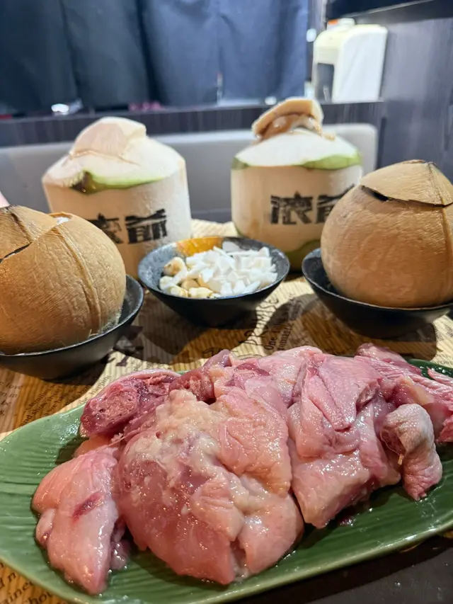 香港最原汁原味嘅椰子雞火鍋,就係旺角!🌴🐔椰子雞用兩隻椰皇和兩隻椰青的椰子水做湯底,無添加任何水或湯,煮出來嘅椰子水自然清甜,雞肉也煮得特別嫩滑。見到蒸汽就可以關火,用沙漏計時,保證到雞肉熟又唔好質地變柴!🍈✨🥩🔥手打嫩牛滑手打嫩牛滑肉質鮮嫩,口感食得出無添加太多生粉,真材實料來嘅。火鍋一煮,吸收湯底的精華,鮮味十足!🥚🍽️涼拌皮蛋涼拌皮蛋色澤誘人,搭配特製醬汁,清新爽口,開胃又輕盈,非常適合火鍋前的小食!同埋醬汁實在好味,我地直接用佢來點雞肉食,好惹味。油麥菜同炸腐竹真係絕佳火鍋伴侶🥬🌱解膩又營養搭配均勻。兩個人食咁多嘢,加一服務費合共484蚊,可以食到原汁原味椰子雞,抵!🎉