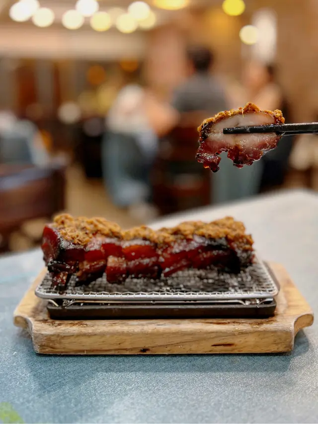 ❌叉燒:來到嘅時候駕勢十足,仲有埋火焰燒住。但食落唔係預期中嘅叉燒味道,係好重嘅麥芽糖味道,好甜。而且質地好硬,切得又好厚。唔好食。打卡一流,味道唔及格。