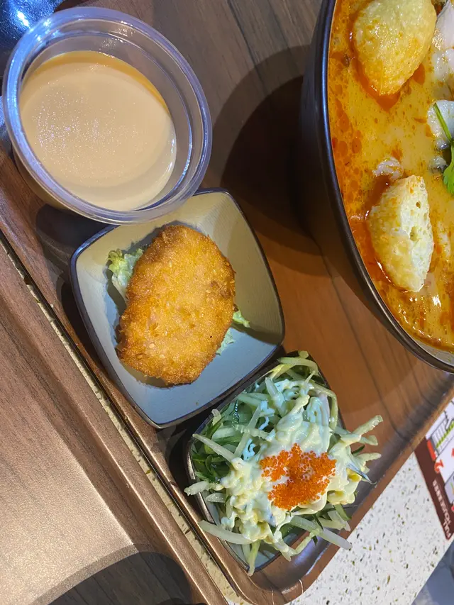 服務:🐣🐣🐣🐣🐣要讚staff態度好好又有禮貌環境:🐣🐣🐣🐣🥚燒雞全翼外皮金黃酥脆,肉質多汁,搭配自製醬汁,勁好食雞肉串(2pcs)醃製得宜,雞肉鮮嫩,燒得好香定食餐- 🐷喇沙燒豬頸肉河粉湯底濃郁而微辣,豬頸肉鮮嫩,與河粉的搭配非常出色,是一碗讓人回味的美食🐷蟹籽沙律前菜點左蟹子沙律🥗清新的沙律中加入蟹籽,口感豐富,蟹子份量都算多🐷榴槤炸彈這道創意料理外脆內軟,榴槤的獨特香氣搭配炸皮,十分吸引🐷班蘭奶凍清新可口,口感滑順,甜而不膩🐷炸雞軟骨外酥內嫩,口感酥脆🐣定食-汁燒安格斯牛小排飯牛小排肉質鮮美,新鮮唔韌😈😈😈好好食!🐣廣島炸蠔外脆內嫩,搭配檸檬和醬汁,風味獨特,讓人印象深刻🐣日式炸帶子帶子的鮮味被炸得恰到好處,外皮金黃,內裡保持了海鮮的嫩滑總結食物種類好多又好食,無論是主菜,小食選擇都好多。staff服務質素高,超有禮貌,環境舒適,是個適合聚餐的好地方。一定會encore !!…查看更多