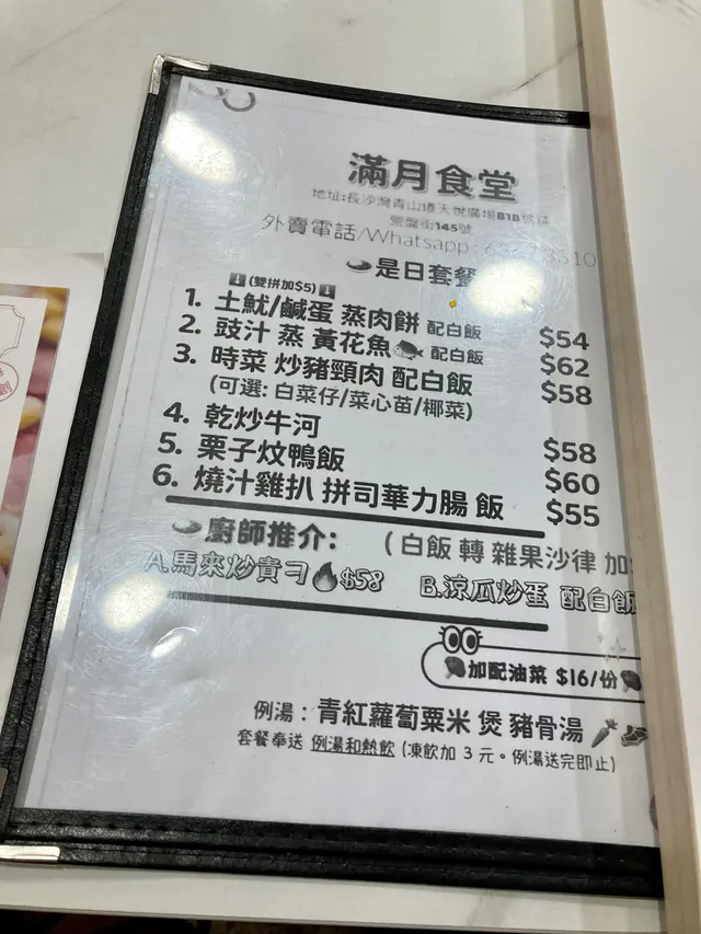 滿月食堂 (長沙灣) 網址: https://s.openrice.com/QrbS0dbOB00 地址: 香港長沙灣營盤街145號天悅廣場地下B1B號舖 電話: +852 63673310