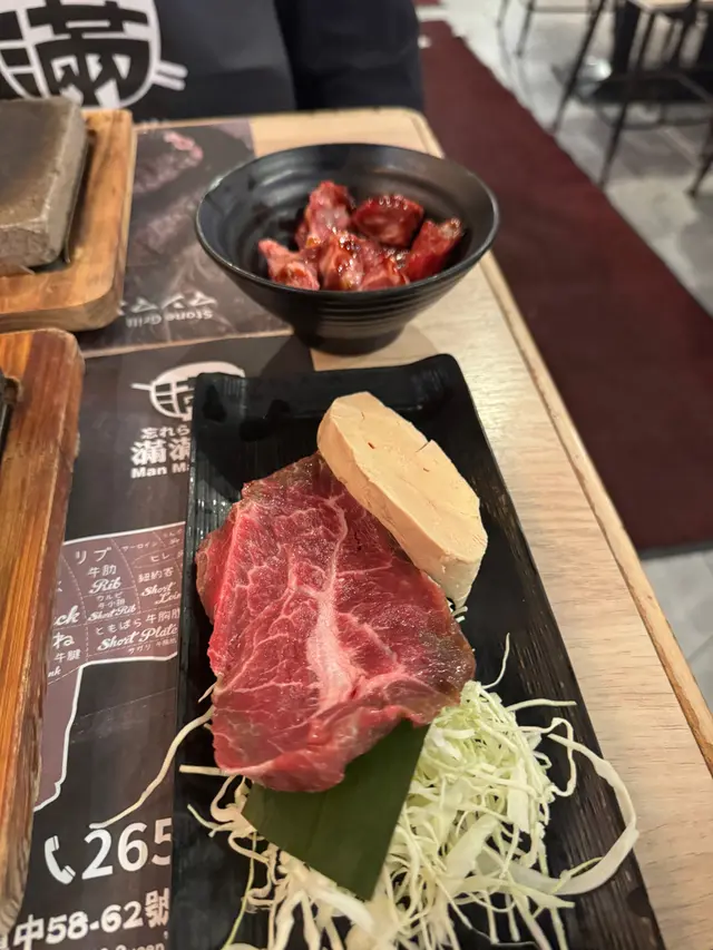 中環佢不嬲俾人嘅印象係啲嘢食比較貴,呢間滿滿食堂直程係中環打工仔恩物,全部好食夾大件😎 座位都好舒適闊落👍🌟厚切牛柳(200g)$98一定係呢度嘅招牌菜,用石板上,聽到滋滋聲已經流晒口水😂 石板夠晒熱,可以燒到外皮焦脆,內裡係呀,好吸引嘅粉紅色🤩 外脆內軟質感,肉汁滿滿,肉味都好濃🤤 以中環標準而言,$98品嚐到如此水準牛柳,真係難得😍🌟蟹皇飯 +$6套餐包咗白飯,加$6就可以換蟹皇飯,蟹香濃郁又唔腥,$6值得一試👏🌟匈牙利鴨肝 +$35追加鴨肝真係明智之舉😎用石燒可以自己控制燒幾耐,表面煎得焦香,內裡卻保持柔滑。🌟煙三文魚沙律 $22有好多片煙三文魚,$22真係好佛心🫶🏻 中和牛柳同鴨肝嘅油膩感,一定要叫呀😆🌟滑蛋包飯配咖喱吉列豬扒 $56滑蛋包飯又係好出色喎😎 半熟炒蛋包裹米飯,賣相好靚🫶🏻 咖喱吉列豬扒外皮酥脆,豬肉保持嫩滑,日式咖喱非常溫和,又香又甜,真係Comfort food🥰食咗咁多嘢,都係二百零蚊,性價比極高👍 特別推薦佢嘅石燒牛柳,非常高質👏 食飯時間記得早啲嚟攞位😎…查看更多