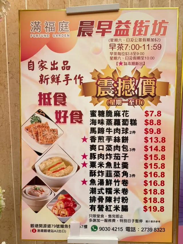 滿福庭 (觀塘) 網上訂座即賺Rice Dollars 網址: https://s.openrice.com/QrbS0gr4A00 地址: 香港觀塘開源道79號鱷魚恤中心7樓 電話: +852 27398323