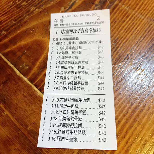 $70 (午餐)