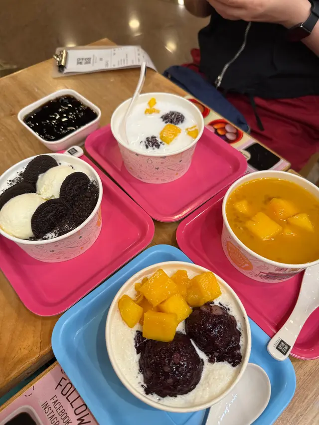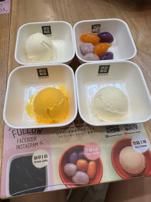 紅豆沙黑芝麻湯圓🍡食飽飯梗係周圍行下,但係行左幾步,個肚開始肚空空就諗起食糖水,係朗豪坊即時諗起滿記,好耐冇食過,就諗住試試質素保唔保持到水準。可能時間尚早,唔洗特別點等位就已經馬上有位。座位雖然有d迫,但冇計香港鋪租貴,係可以接受到。我哋叫咗紅豆沙黑芝麻湯圓,等左一陣,個糖水都好快到,已經急不及待,先咬左一啖湯圓,咬口煙靭,紅豆沙起沙都唔錯。份量黎講中規中矩,飯後甜品算係咁。唔會特別趕人走,可以慢慢食同傾計,但係始終係open area 講野要大聲少少,傾密計就唔推薦啦…查看更多