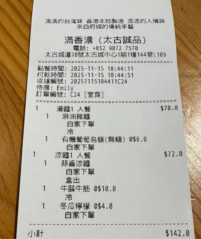 滿香濃 (太古) 網址: https://s.openrice.com/QrbS0po0F00 地址: 香港太古太古城道18號太古城中心1樓誠品生活144號舖 電話: +852 90727570