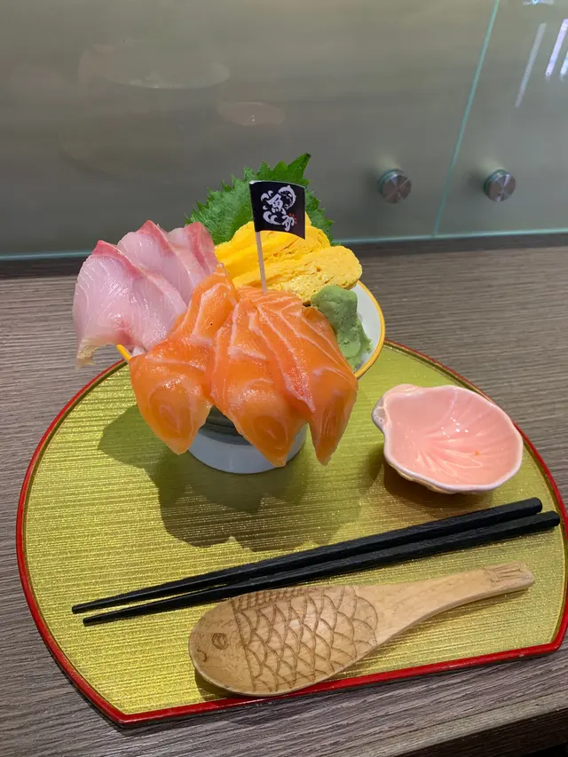 三文魚、油甘魚、帶子、玉子燒丼飯