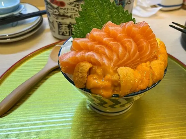 星期六晚餐,店舖不大,人客不少。吧檯座位有點擠擁,坐得不太舒適,但勝在可以近距離欣賞師傅處理食材。各式刺身、壽司、丼飯均在吧檯前料理,也算是值回票價(+1服務費)的視覺享受。三文魚、海膽、玉子燒 $138視覺效果震撼,三文魚和海膽像要滿溢似的,然而這是師傅的佈置手藝,把刺身集中在前半丼上。刺身份量不少,但沒想像中的多。三文魚厚切有口感,而且師傅有順應紋路才下刀的。海膽鮮甜但不濃味。三文魚、帶子、蟹籽、玉子燒 $138也是視覺效果滿滿的一丼。相比之下魚生海膽丼的味道更具層次。查看更多
