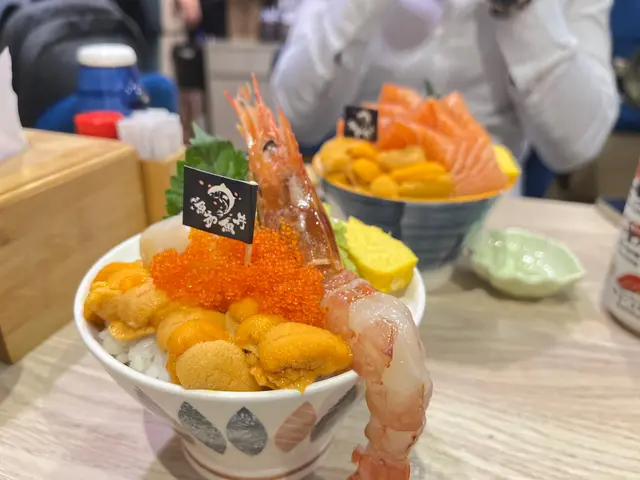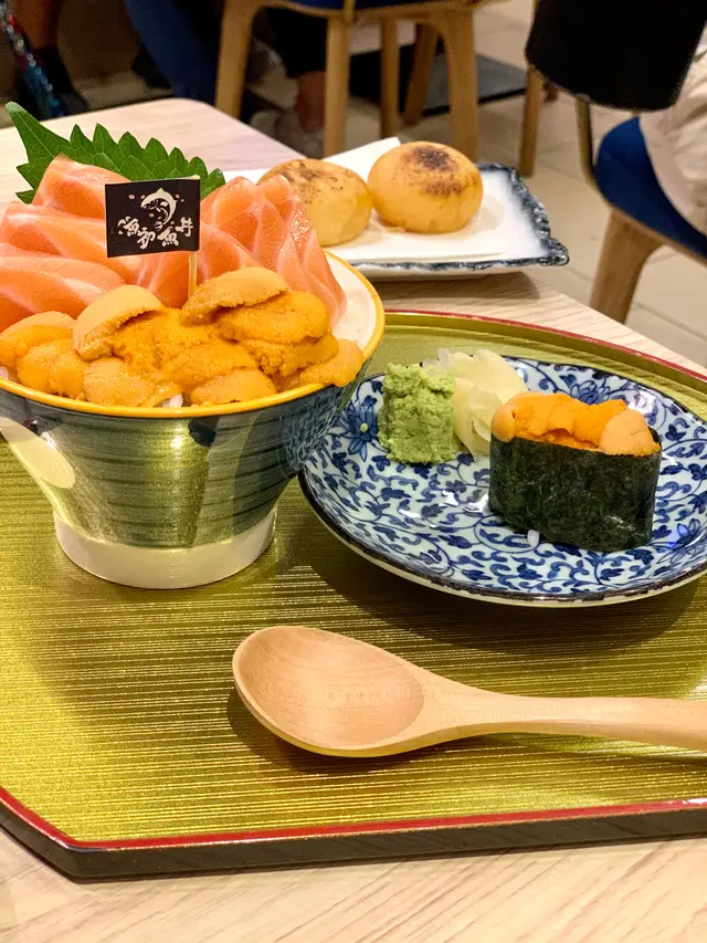 係IG見到個海膽飯好吸引 即刻手刀Book位黎試!叫左三文魚·海膽·玉子飯($138) 同埋 海膽·赤蝦·帶子·蟹籽·玉子燒飯 ($288) 兩碗海膽份量都好多!超級Creamy 入口即溶😍 赤蝦超級大隻,有少少食到不知所措,怕跌曬落台!玉子就細粒左少少,無咩記憶點!三文魚同帶子都好新鮮,個人唔鍾意三文魚腩,因為陣油味會令我嘔,舖頭係用瘦既三文魚而份量超級多!帶子好鮮甜但自己覺得份量黎講唔夠喉!用性價比來Compare的話,會覺得三文魚性價比高D!另外Order左免治雞肉丸($48),我覺得呢個係健身人士可以食!因為一點都唔肥,同埋Confirm自家製,因為食到雞軟骨碎!附送蛋黃一粒,用來點粒丸好食,一啖咬落去有Creamy同鹹甜口感!店內環境骨子,上菜速度都好快!查看更多