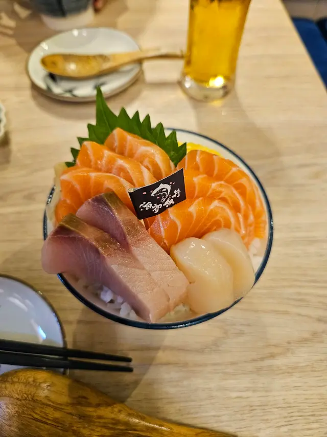 阿女又搵到有好嘢食,長沙灣有間漁初 ·魚丼的魚生丼超正,價格經濟實惠,今晚就過嚟試吓!餐廳裝潢設計好有日式居酒屋風格。雜錦魚生丼:三文魚、油甘魚、帶子、北寄貝、赤蝦、蟹籽、玉子燒。份量十足,魚生完全鋪滿白飯上,食材滿都看不到白飯,刺身樣樣新鮮肥美,食落去有啖啖滿足感。三文魚、油甘魚好肥美,魚脂甘香,北寄貝、赤蝦爽口,玉子燒香滑,加埋蟹籽口感更佳。三文魚系列丼,有三文魚、油甘魚、帶子、玉子燒,魚生全部新鮮又係厚切,所以食落有口感,魚脂豐富甘香。帶子厚肉,肉質細嫩,散發鮮甜味道。酢飯還可以免費添加。燒蟹膏特長蟹柳棒,蟹膏烤過後香氣不斷湧出,鹹甜適中的蟹膏搭配特長蟹柳棒,濃濃的香甜味令人非常回味!原條司華力腸,燒到皮層微脆,腸的肉質軟中有彈性,味道不會太鹹。燒長洲大魚蛋,彈牙有魚味。燒鵪鶉蛋,蛋味較香濃,口感柔軟,保留了鵪鶉蛋的質感。燒雞中翼,皮脆肉嫩有肉汁,而且好入味!查看更多
