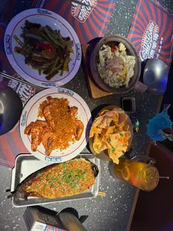 難得媽媽同D 姊妹shopping 完過黎接我放工, 一於同佢係附近搵好野食.上次我同朋友黎過漁樂場食烤魚, 體驗好好, 食過番尋味. 上到去點餐先發現原來佢地做埋小菜喎, 媽媽話叫D 小菜食無咁熱氣, 又可以俾佢偷下師. 無問題! 馬上安排, 哈哈. 天氣咁熱好啱叫D 冰涼開胃餸, 點左個冰鎮咕嚕肉, 嘩, 喜出望外呀!必點!! 大推!!!平時好小讚人既媽媽, 食到呢個都讚不絕口個賣相顏色配搭好靚好吸引 , 唔會好多濃稠既汁芡. 啲咕嚕肉好脆好嫰, 重點係一啲骨都無味道少少酸甜, 超級好食秘製胡椒奶油蝦, 胡椒味撲鼻而來, 好鬼香!啲奶油唔係好creamy 好杰身果種, 平衡左楜椒D 辣, 又帶出濃郁奶香, 好惹味.秘製爆蒜豆豉雞煲, 熱辣辣上枱, 雞件好滑嫰, 完全無肥油, 連皮食都唔heavy, 爆炒過D豆豉蒜出哂味, 不錯不錯. 點左個疏菜均衡下飲食, 估唔到個惹味砂鍋椰菜花可以炒得咁有穫氣, 椰菜花爽口清甜, 顏色唔會話炒到黃哂黑哂, 仲好青綠靚仔, D腩片肥瘦適中點左杯超級水果茶俾媽媽, 大大杯好足料, 有西瓜, 哈密瓜, 菠蘿等等, 消暑解喝我自己就叫左 Pina colada, 椰香味濃, 好易入口, 超啱女仔飲, 清新舒暢!食飽飽坐多陣聽下live band, 勁Chill, 漁樂場個環境真係坐得好舒服, 駐場歌手水準好好, 又識搞氣氛, 現在有位客人都忍唔住上去jam 左首歌, 好正呀!!! 下次一定會再黎!!📍 漁樂場荃灣衆安街55號大鴻輝(荃灣)中心6樓#hkfoodie #foodiehk #foodie #hkfoodstagram #hkfoodblogger #food #foodstagram #foodblogger #instafoodie #foodporn #香港美食 #香港必食 #香港探店 #香港打卡 #香港旅遊 #香港 #香港好去處 #假日好去處 #荃灣搵食 #荃灣美食 #小菜 #烤魚 #liveband…查看更多
