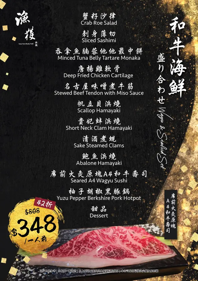 「浜燒」是將岸邊即捕既海鮮即燒,屬於日本傳統烹調方式,以火烤新鮮海產配以簡單調味,雖然呢間餐廳做唔到岸邊即捕,不過都一樣好味😋「龍蝦饗宴」二人餐有齊沙津、刺身、龍蝦、帆立貝、牛柳同烏冬,只係七百幾蚊,性價比相當高對浜燒龍蝦同帆立貝既印象尤其深刻,燒龍蝦肉質彈牙,鮮味十足,搭配燒過既芝士特製醬汁,帶有淡淡的鹹香,提升龍蝦的鮮味帆立貝帶有自然鮮甜,煮得剛好,咬下去時非常柔軟,職員燒既時候加入牛油,好濃郁嘅味道刺身片片均勻,天使蝦最有驚喜,蝦膏甘香,口感軟糯原本以為平平無奇的烏冬,估唔到原來用龍蝦殼熬煮湯底,令到味噌湯看起來清淡,實質鮮美香甜,相當濃郁!炸蒜片牛柳蒜味澎湃,一口牛粒軟腍,牛味夠濃用一口泡芙甜品作結,好滿足嘅一餐…查看更多